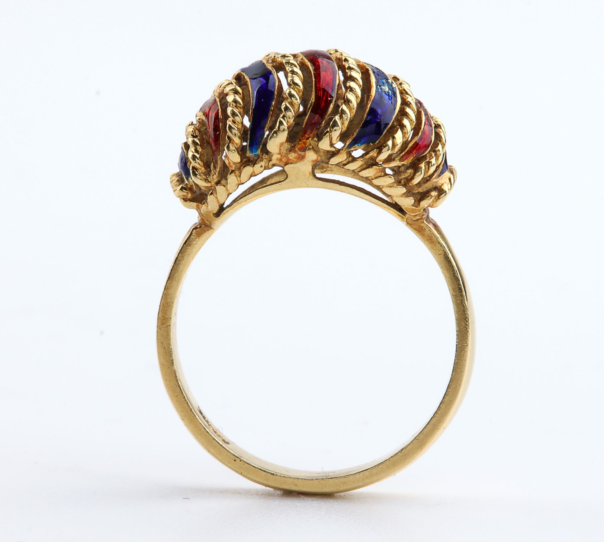 Lot 121 | Una spilla ed un anello in oro con smalti policromi