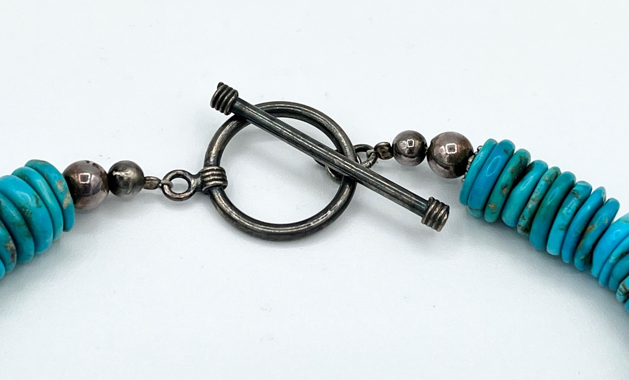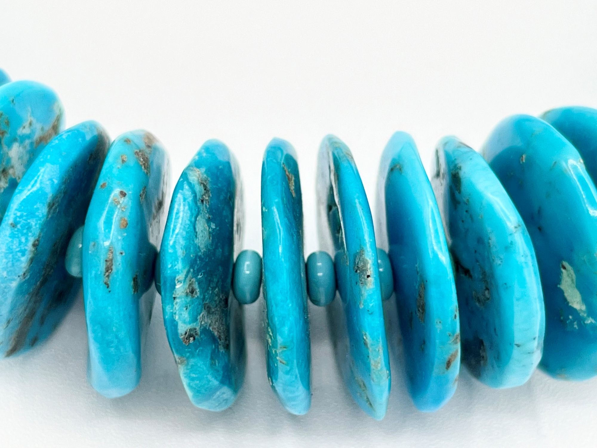 ad un filo di rondelle di turchese in disposizione in gradazione.