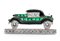 oro bianco 18k, a forma di automobile impreziosita da onice nero, diamanti e smeraldi.