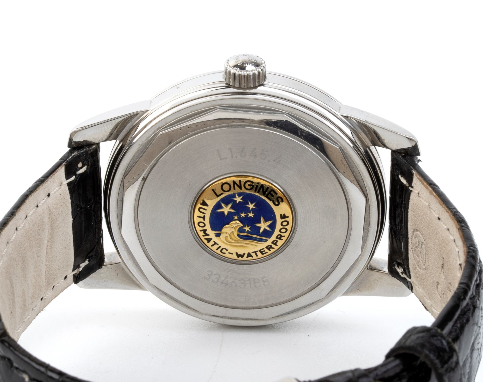 cassa in acciaio con fondello a vite e cinturino in pelle, referenza L1.645.4, matricola 33463188.