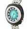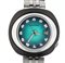 cassa e bracciale in acciaio con lunetta in altro materiale, quadrante verde acqua.