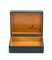 di forma rettangolare, scatola in pelle verde e interno in legno, con il simbolo del marchio Rolex nella parte superiore a destra, interno e sul retro il numero di referenza 67.00.03 e la scritta Montres Rolex S.A. Genève tra i due simboli del marchio.
