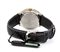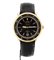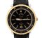 cassa in acciaio con ghiera girevole dorata, cinturino in pelle.