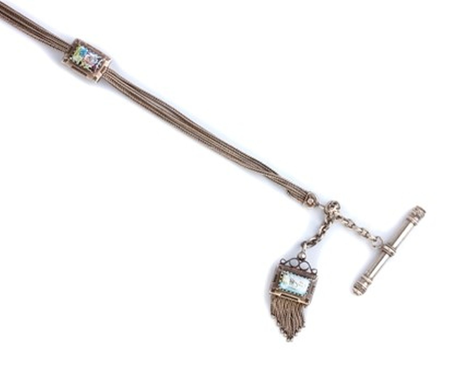 Catena da orologio francese in argento e smati - XIX secolo