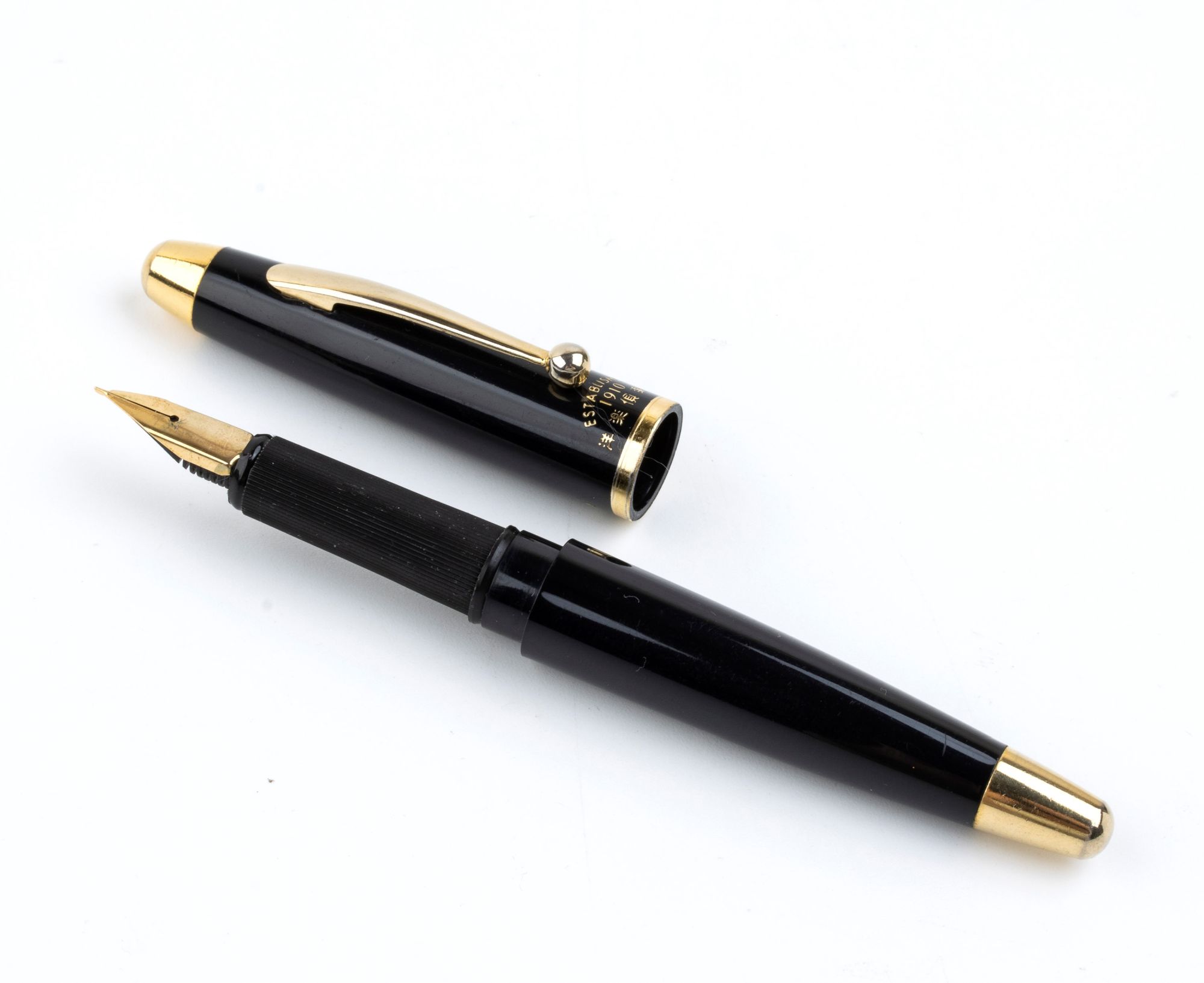 corpo e cappuccio neri, pennino in metallo. Sistema di caricamento a  cartuccia