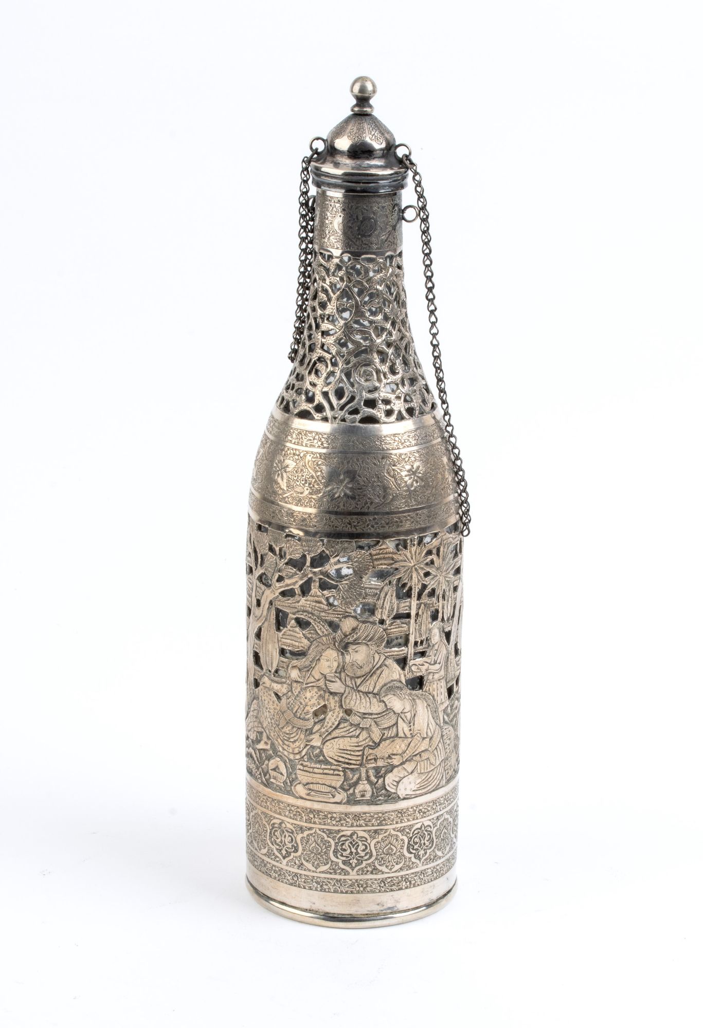 Lot 230 | Bottiglia in argento e vetro - XX secolo Dimensioni 30 x 8 cm. Peso 805,8 gr.