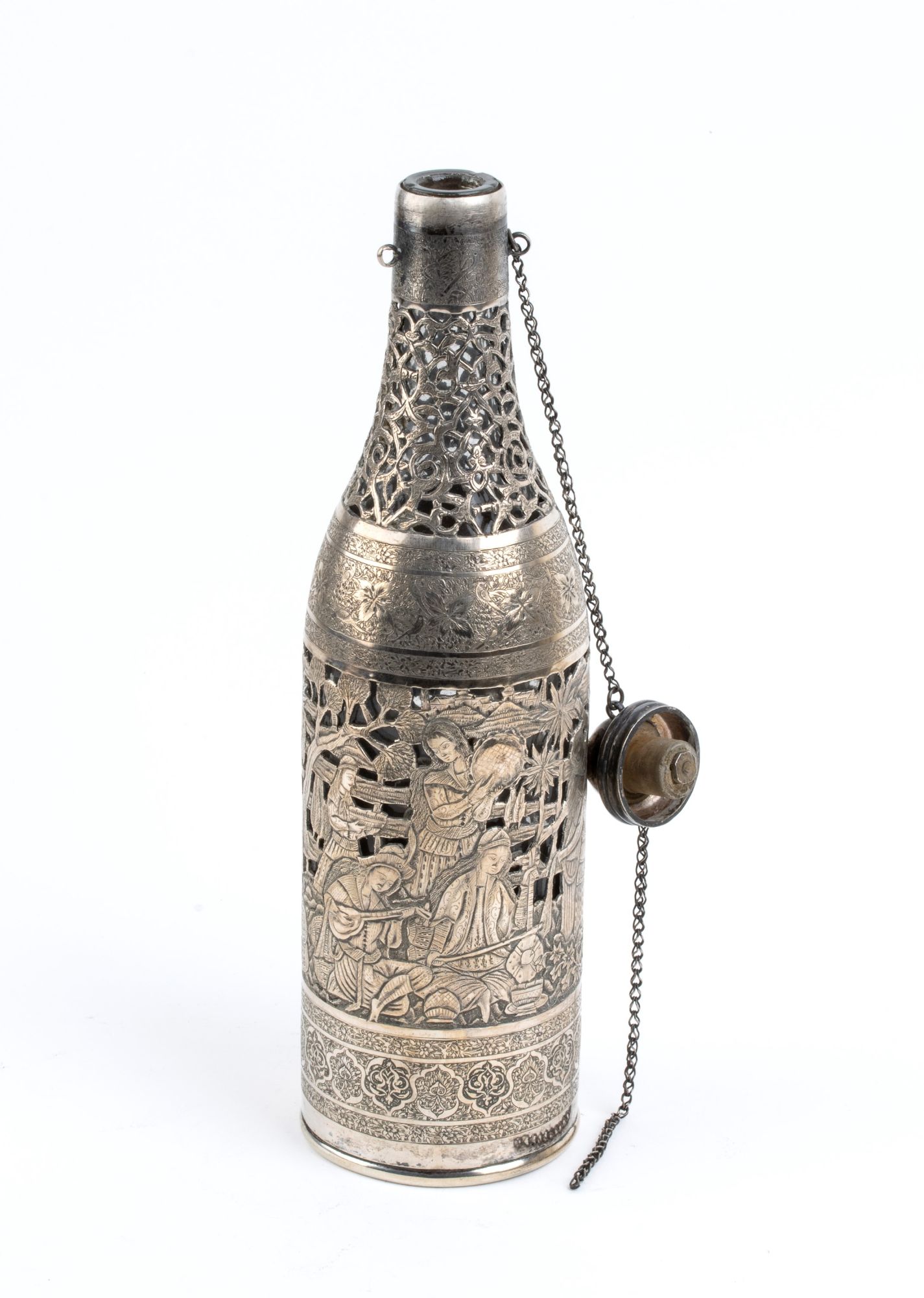 Bottiglia in argento e vetro - XX secolo