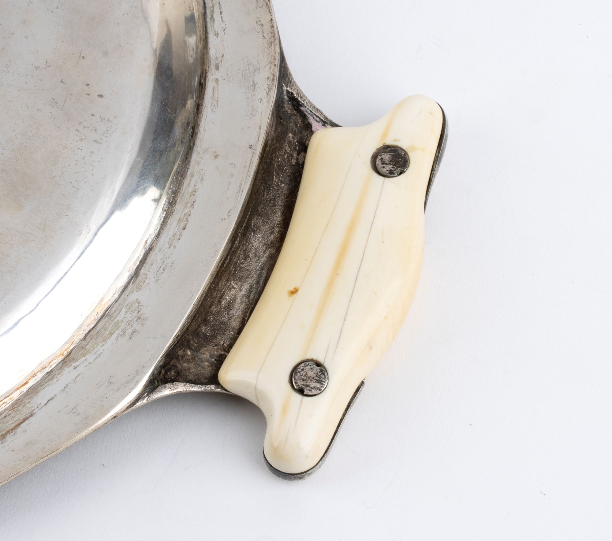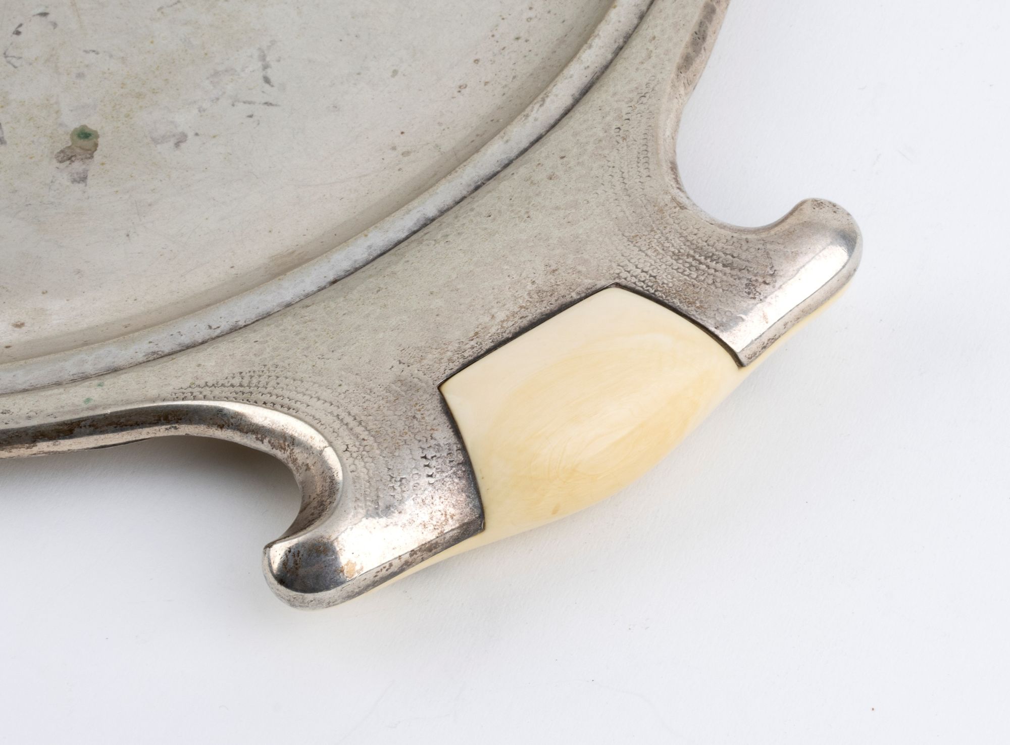 Vassoio Art Déco in argento con manici in avorio marino - Italia, 1935-1945