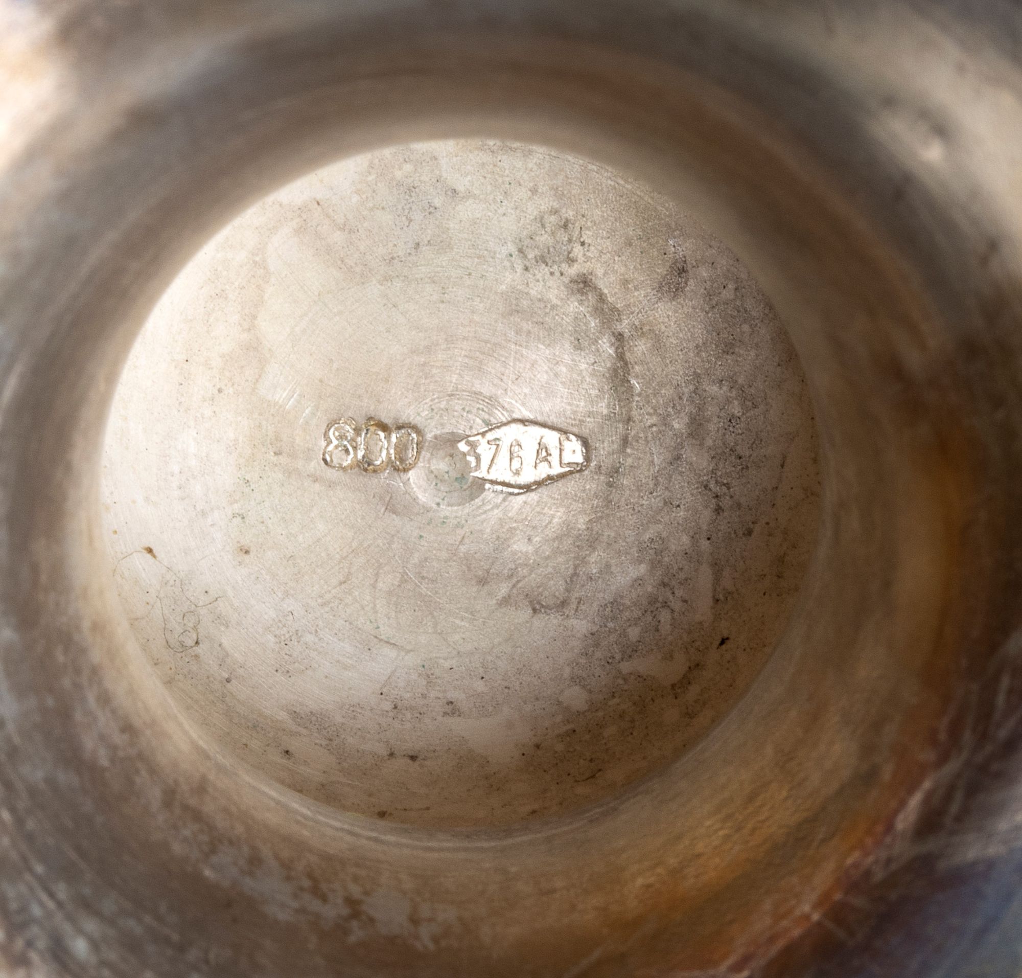 6) Una lattiera: dimensioni 16,5 x 16 x 10 cm. Punzonata "800".