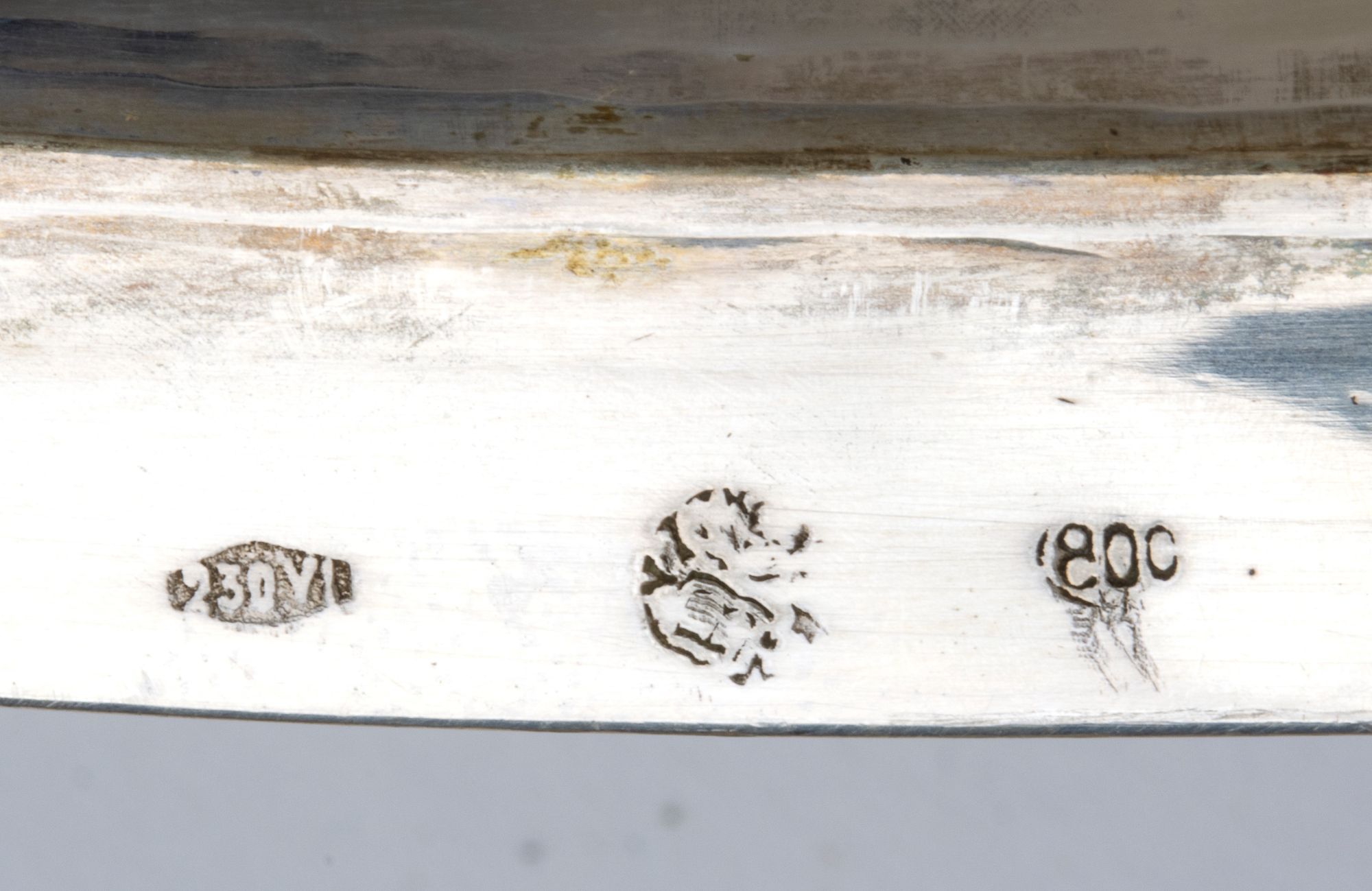 1) vassoio ovale: dimensioni 40 x 26 cm. Punzonato "800 - 230 VI".