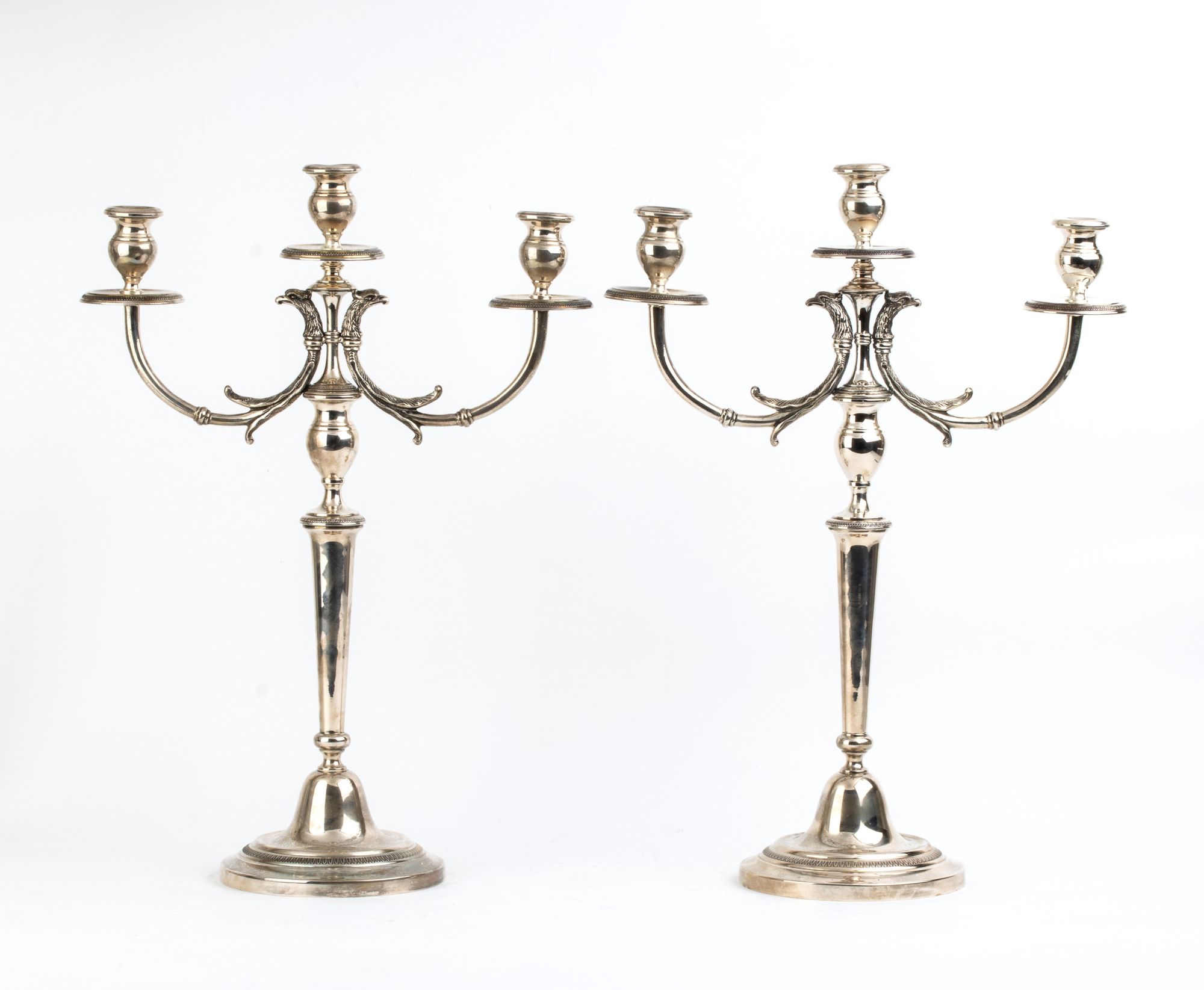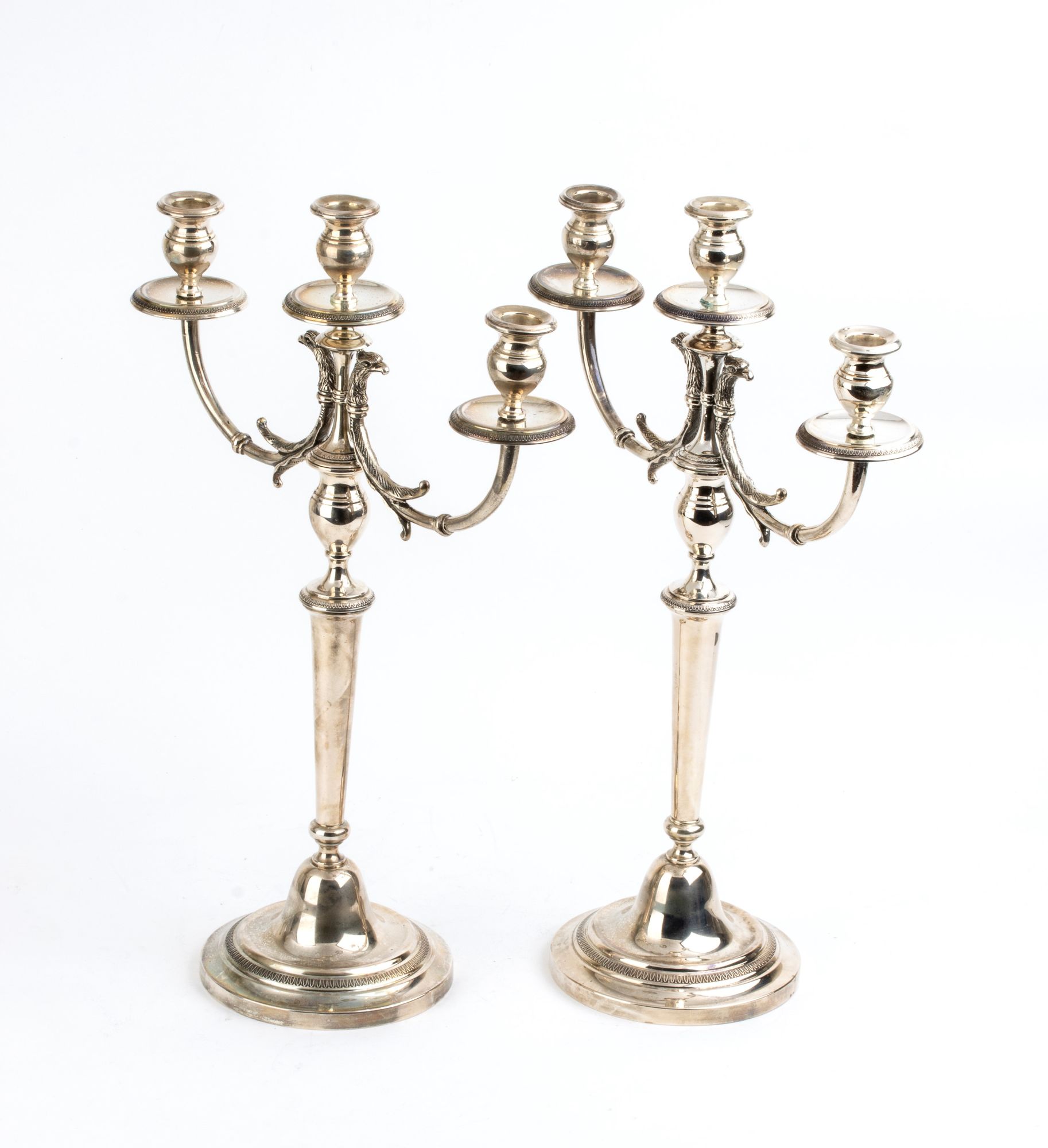 Lot 248 | Coppia di candelabri in argento - Italia XX secolo, argentiere Dell'agata Alberto Altezza x Larghezza x Profondità: 43,5 x 31,3 x 31 cm. Peso complessivo: 2292 gr.