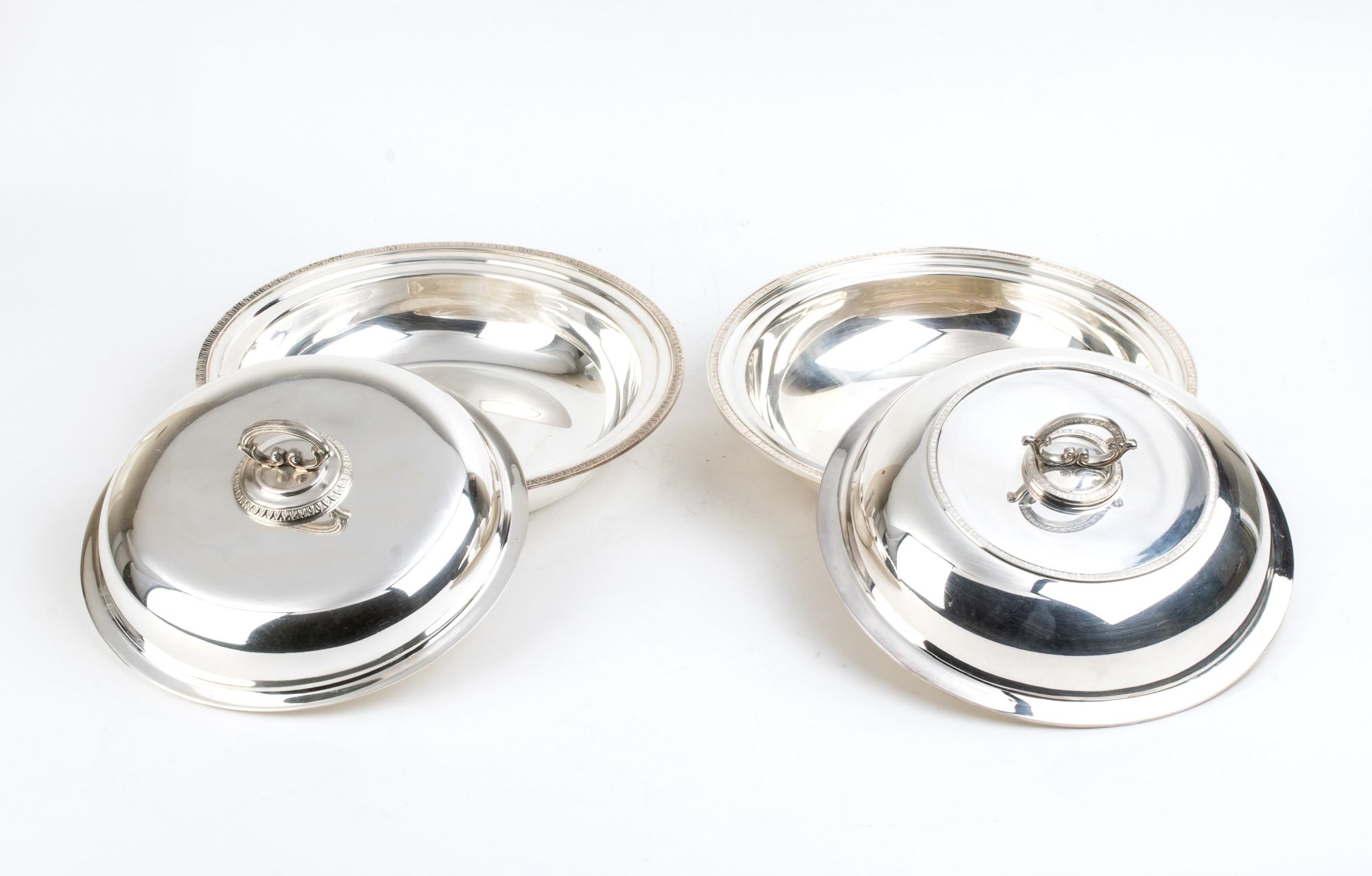 Coppia di legumiere in argento - Italia, metà del XX secolo Altezza x Larghezza x Profondità: 12,5 x 24 x 24 cm. Peso complessivo 2130 gr.