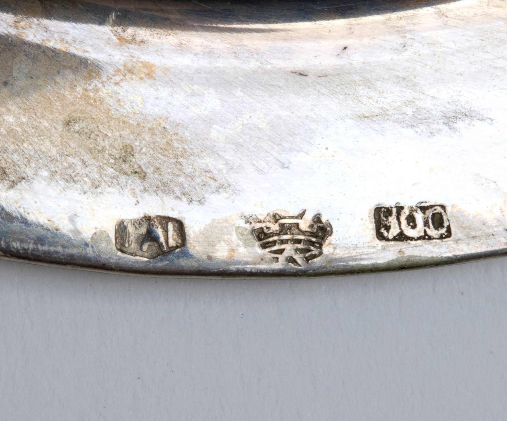 1) 6 piattini in argento: dimensioni 12 x 12 cm. Punzonati "800 - 38 PI", argentiere A. CESA S.C.