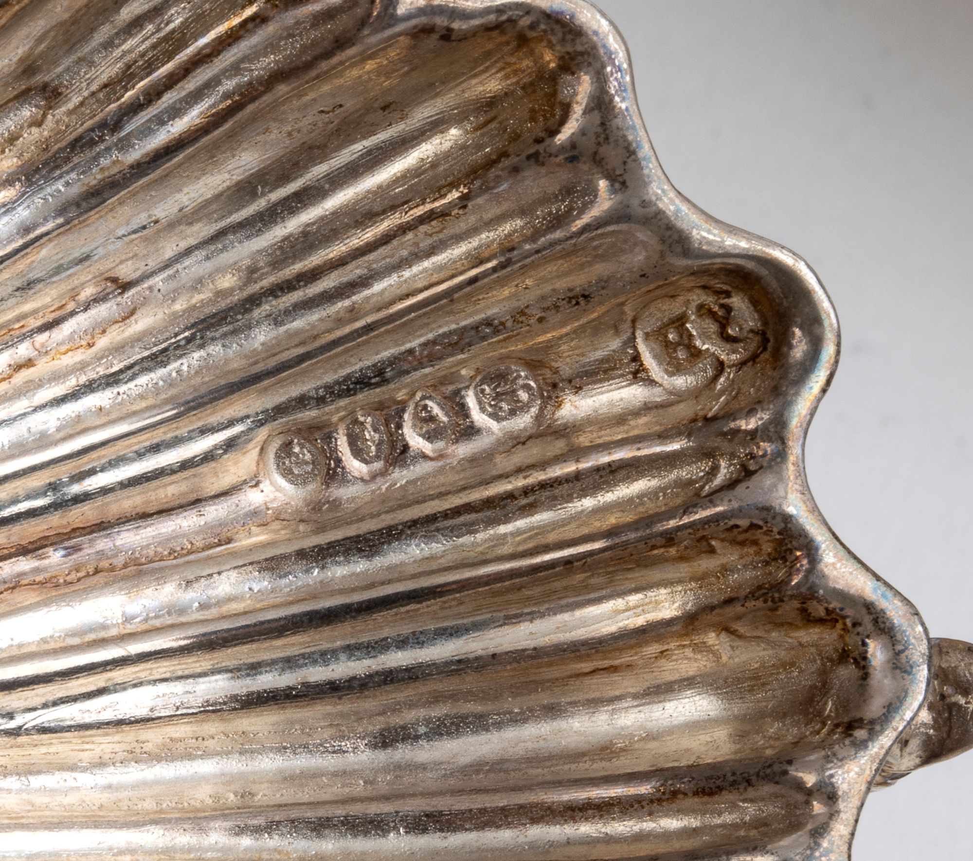 5) Una conchiglia in argento: 2,5 x 6,5 x 5,2 cm. Marchi inglesi per l'argento 925/1000, Londra XIX secolo.