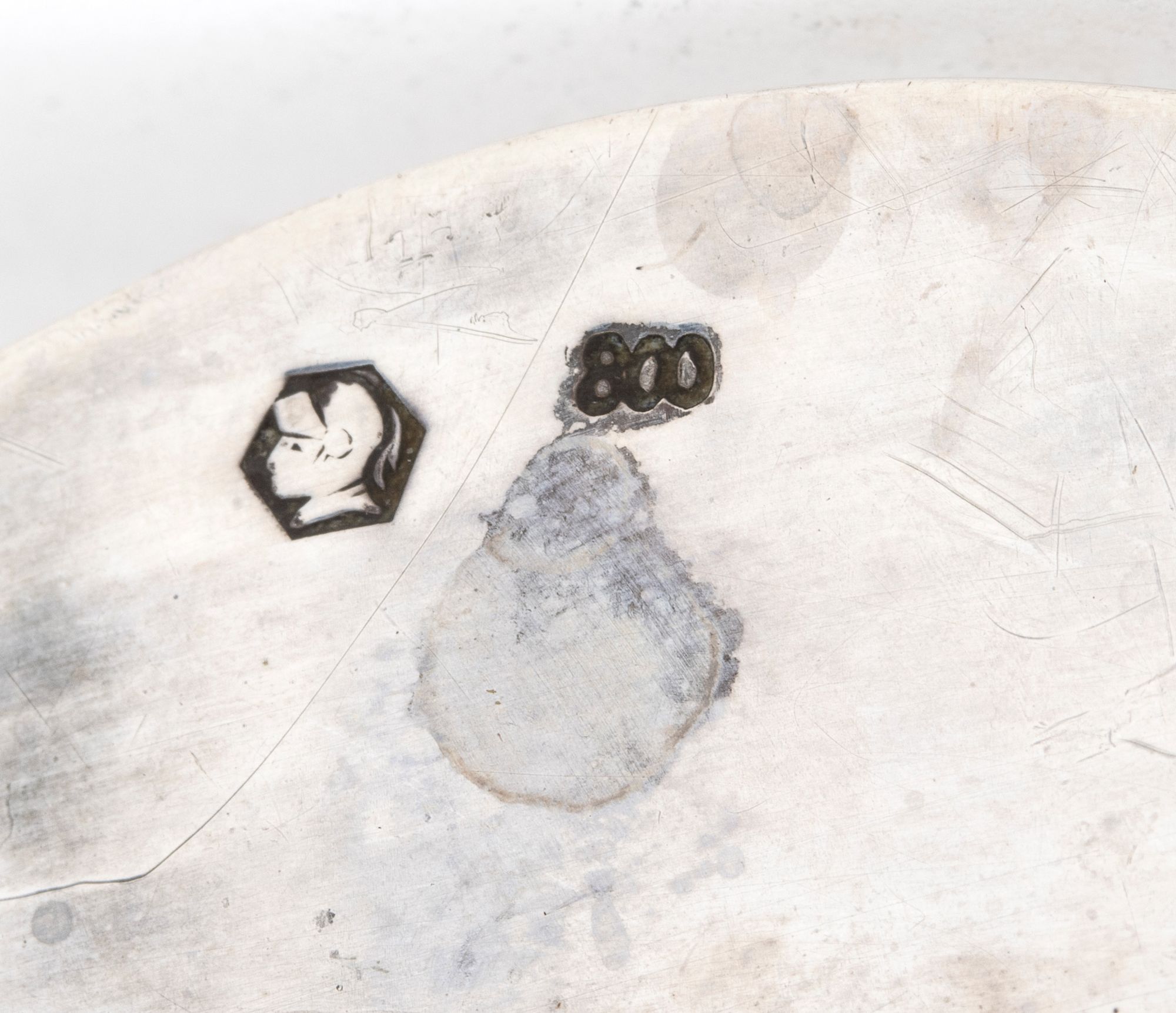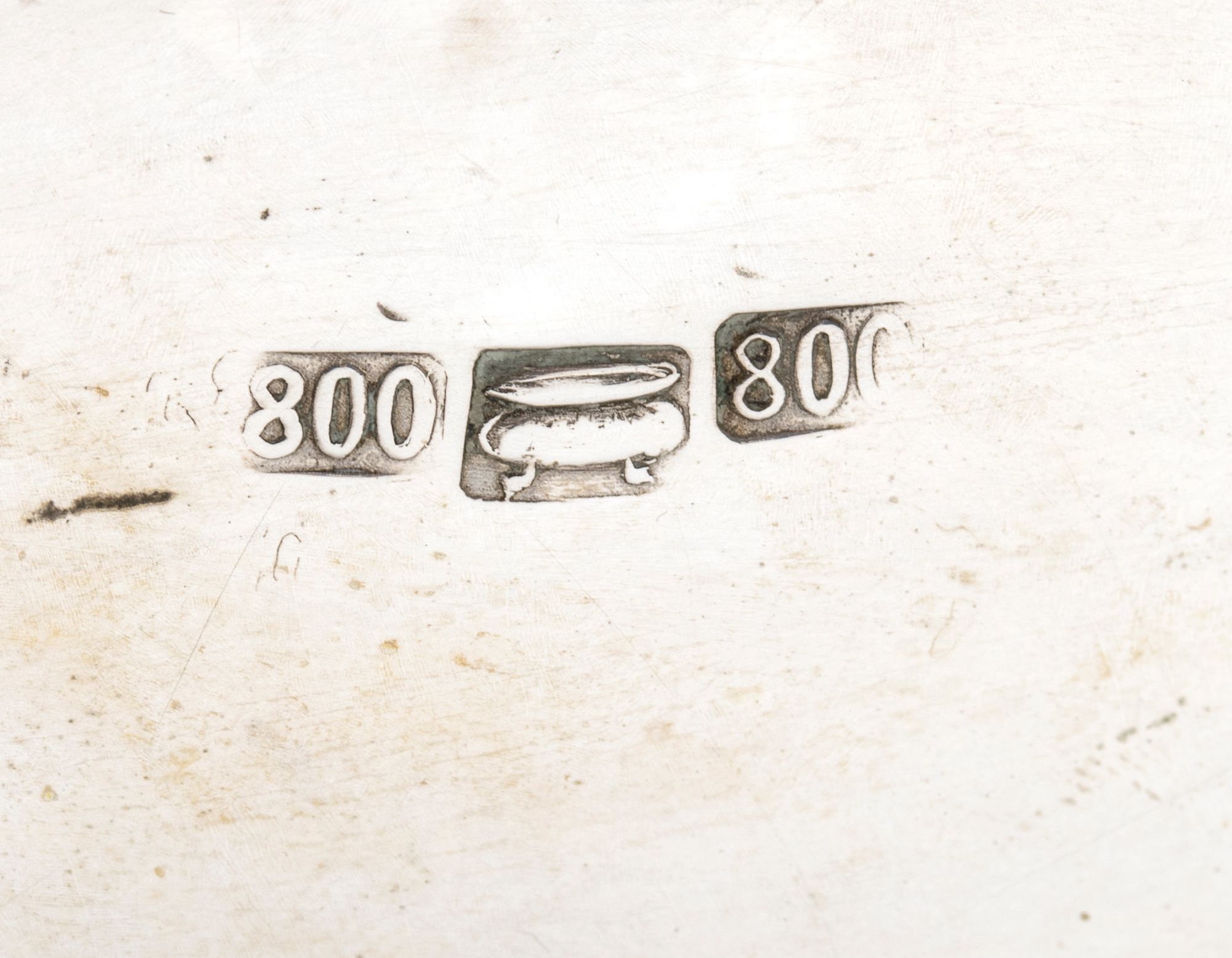 3) Una vasca di piccole dimensioni: 21 x 17,5 x 6 cm. Marchi: "800".