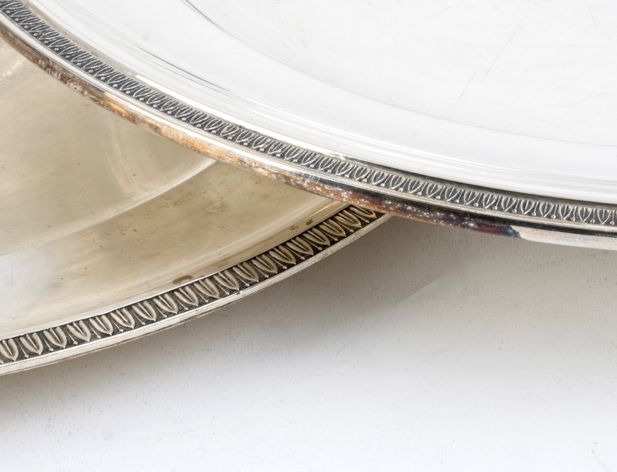 Coppia di piatti tondi in argento - Italia, XX secolo
