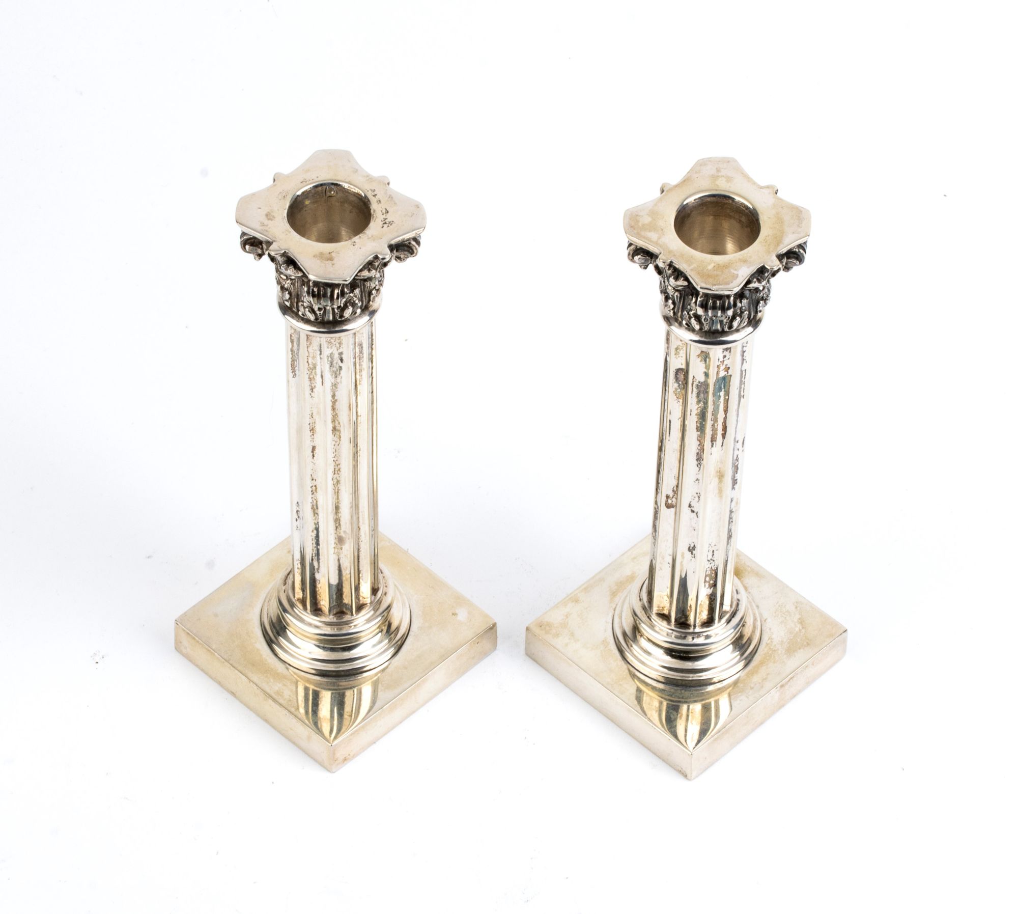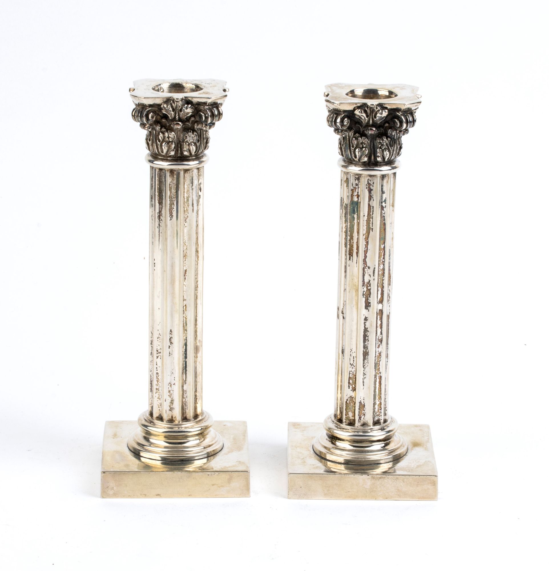 Lot 283 | Coppia di candelieri in argento a forma di colonna corinzia - Italia XX secolo Altezza x Lunghezza x Profondità: 18 x 7 x 7 cm. Peso complessivo 600 gr.