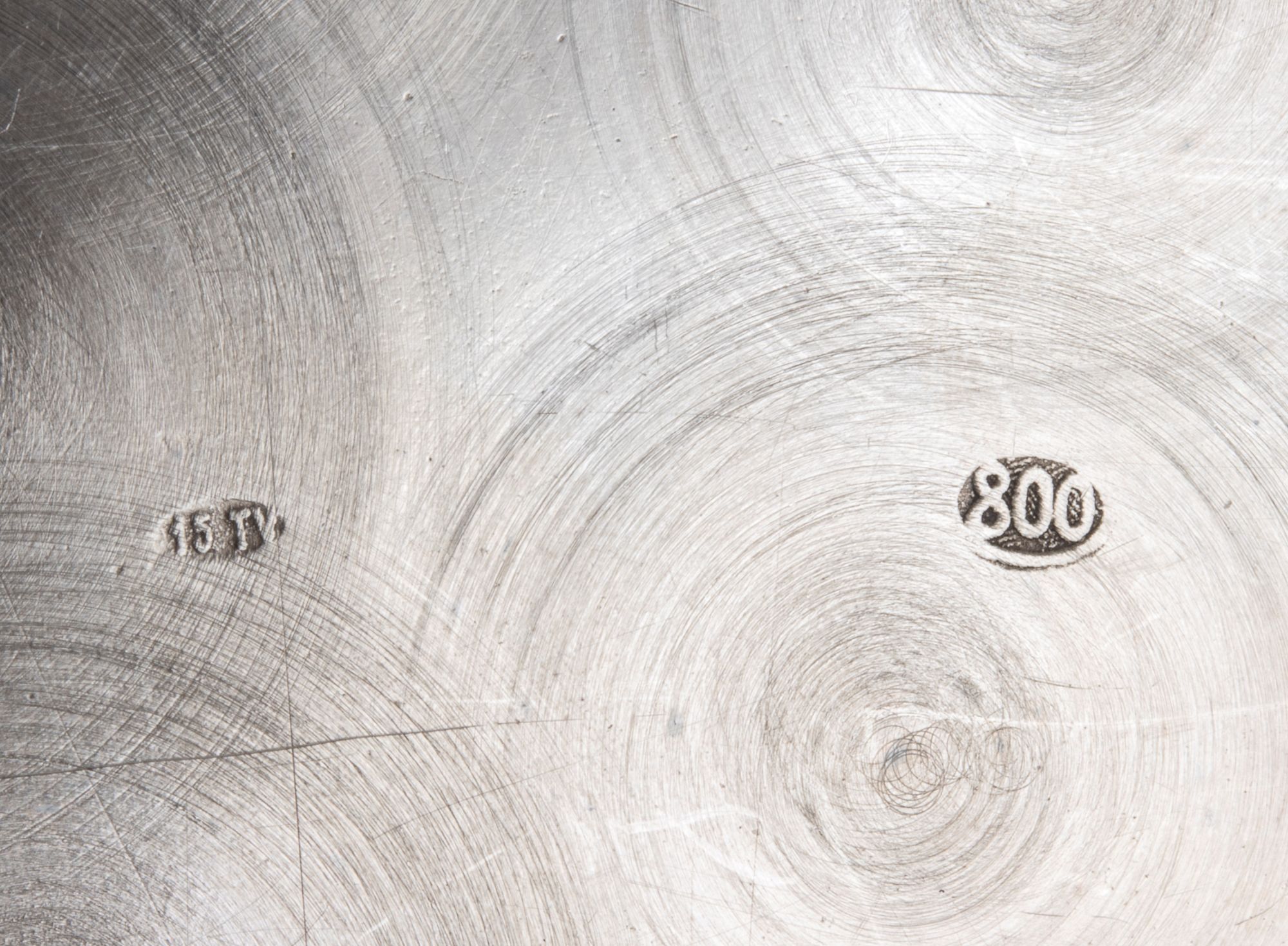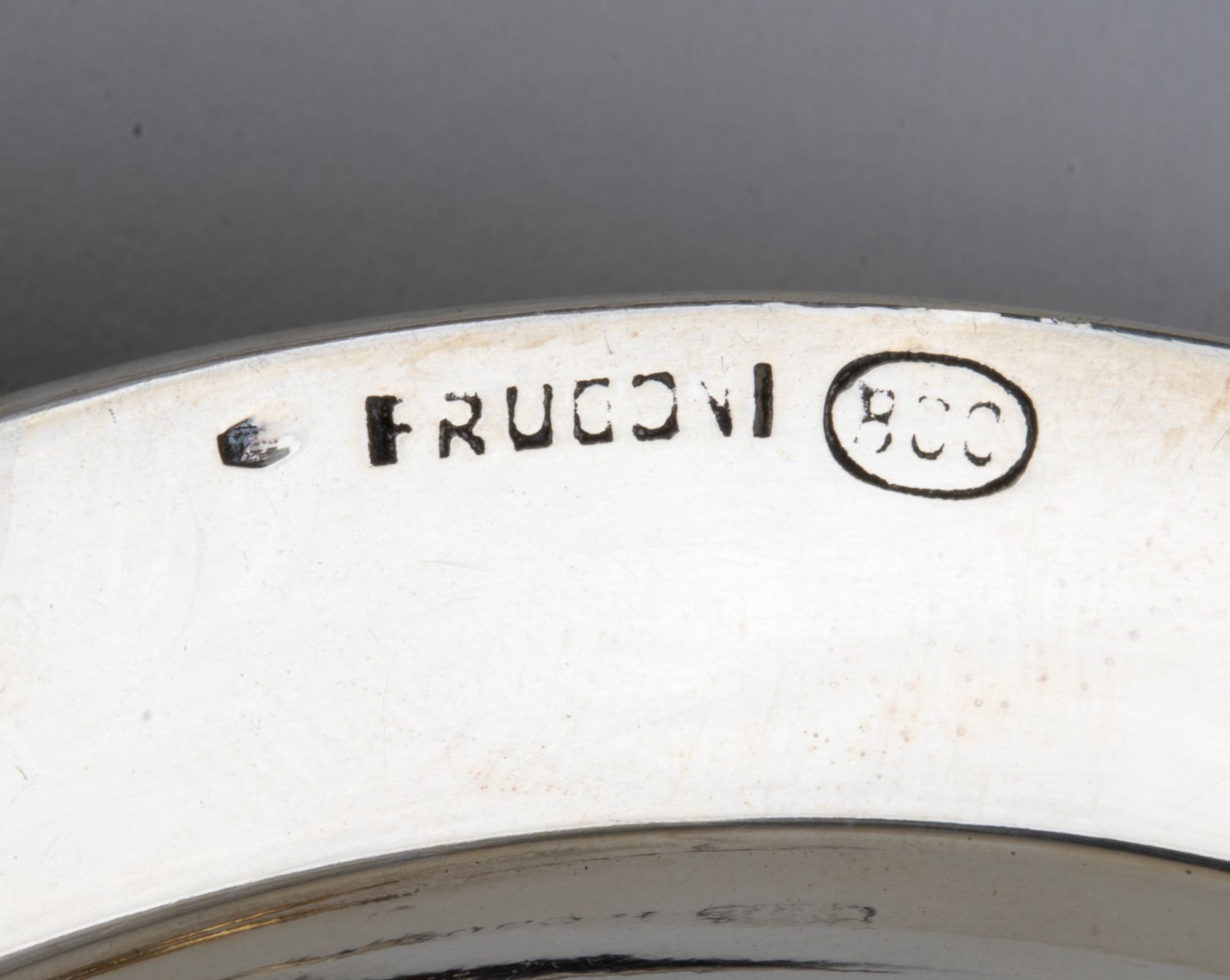 3) Un piatto di piccole dimensioni: 12 x 12 cm. Punzonato "800 - Frugoni".