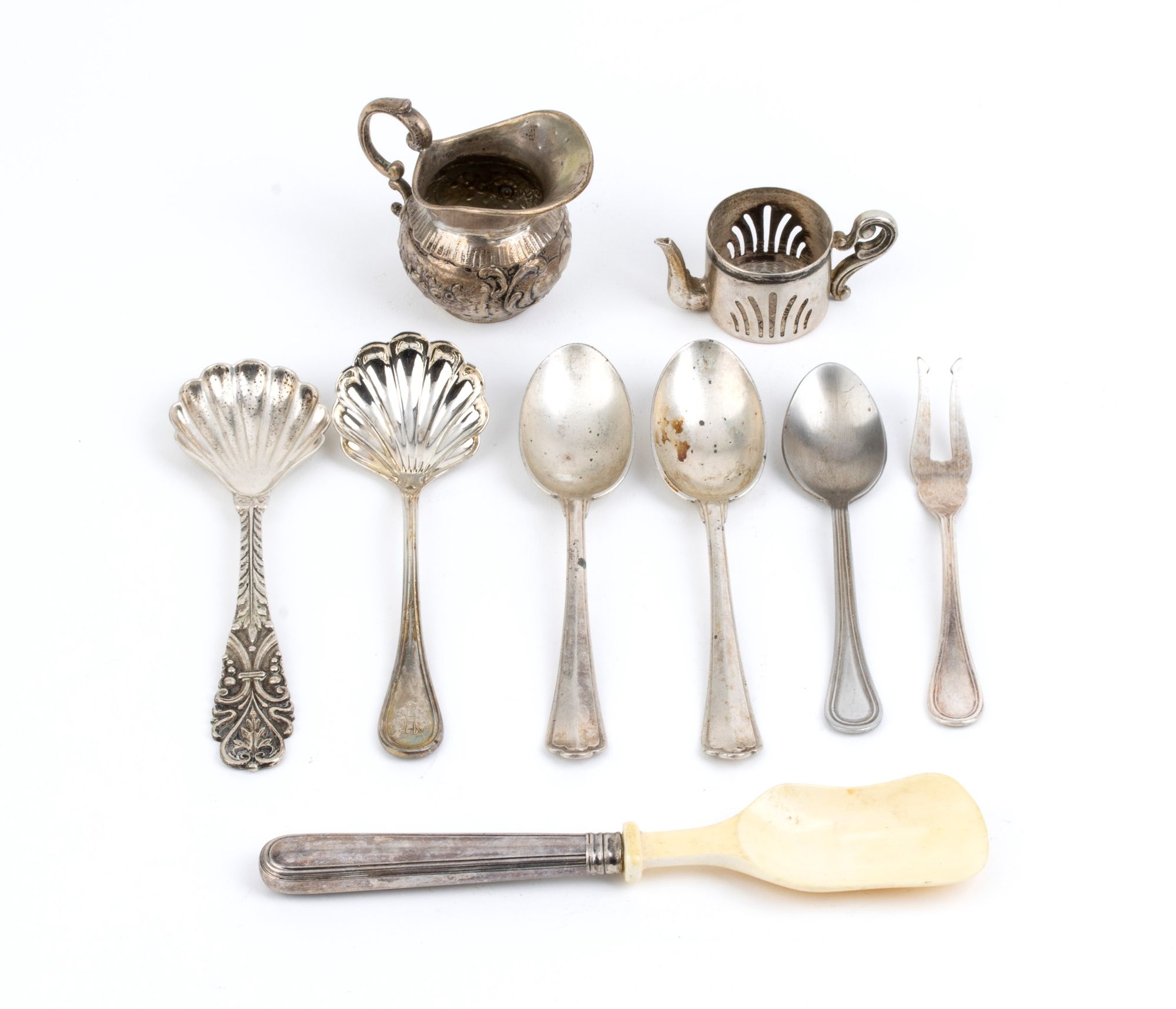Lotto di nove oggetti assortiti in argento