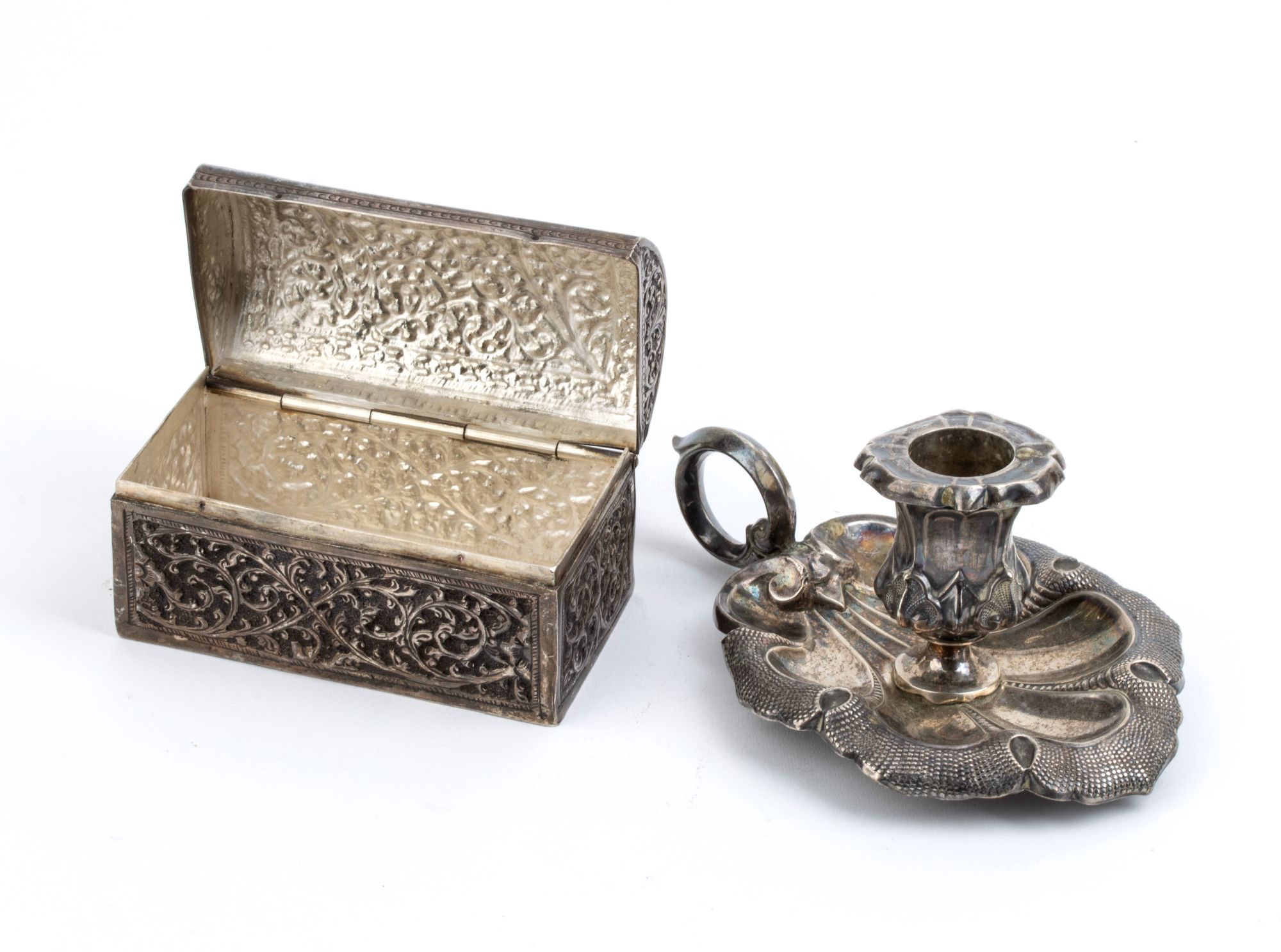 Una bugia e una scatola in argento - XX secolo Peso complessivo 282 gr.