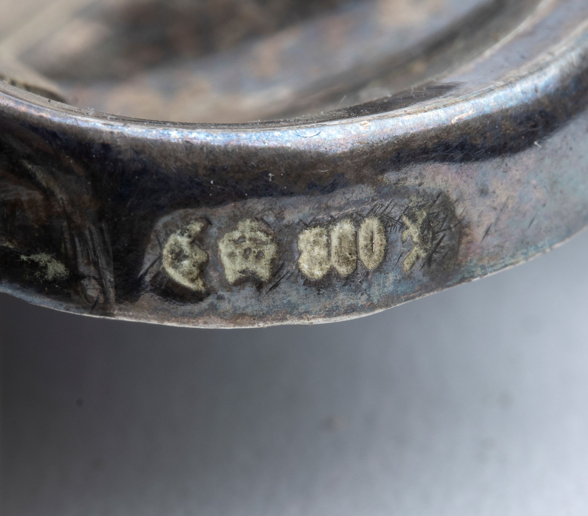 bugia in argento 800/1000, punzonata "800";