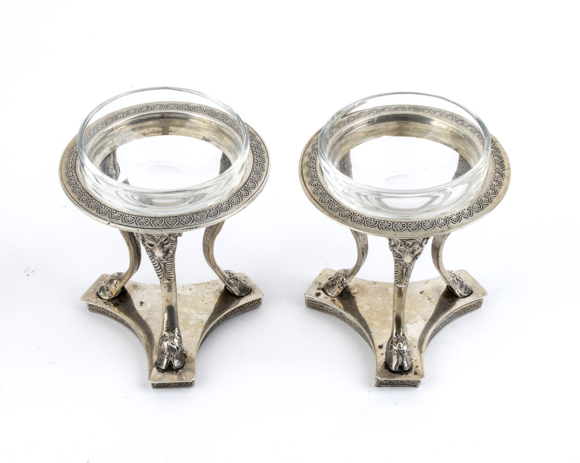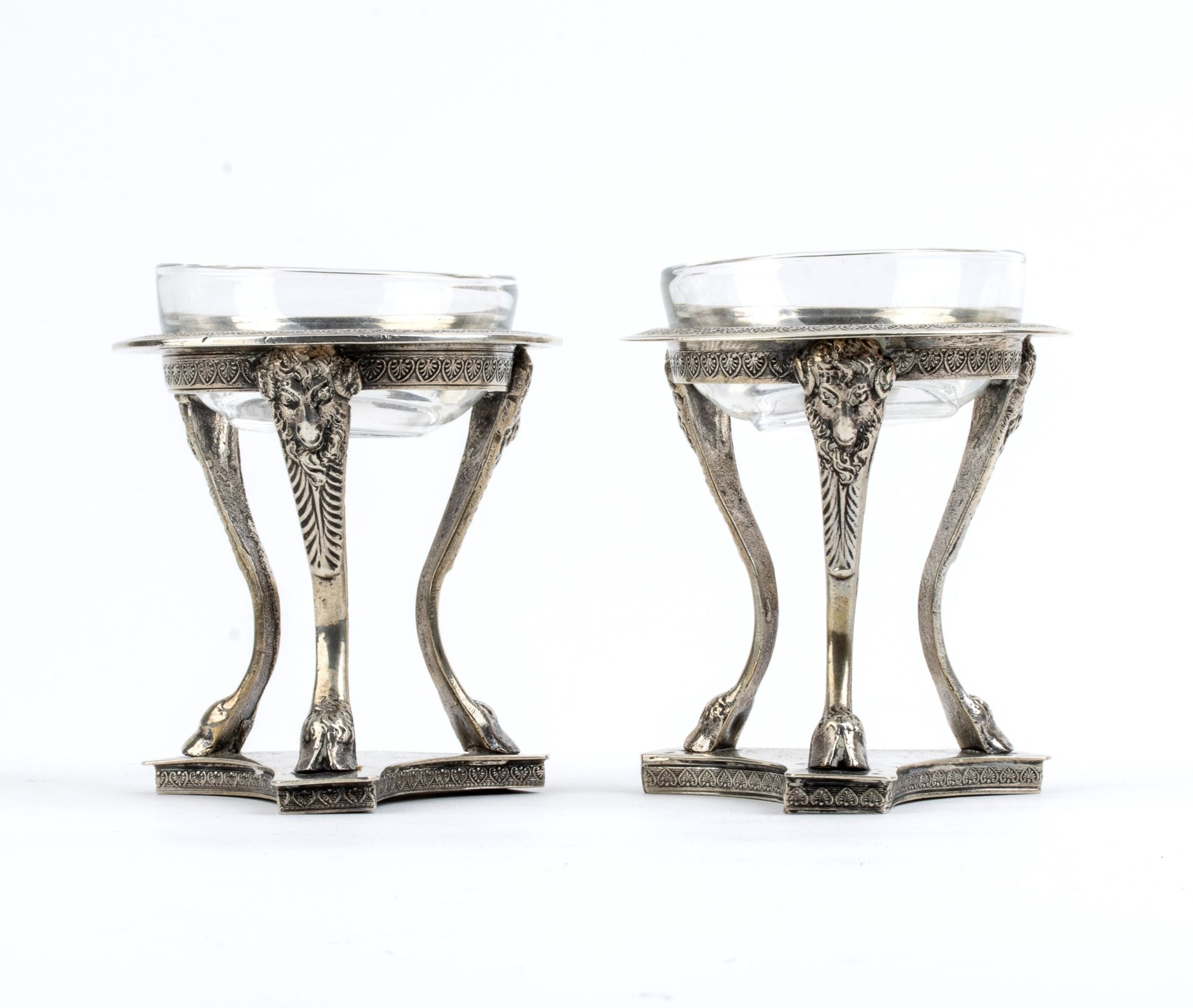Due saliere in argento - Italia, XX secolo Altezza x Lunghezza x Profondità: 8 x 7,5 x 7,5 cm. Peso complessivo netto dell'argento 300 gr.