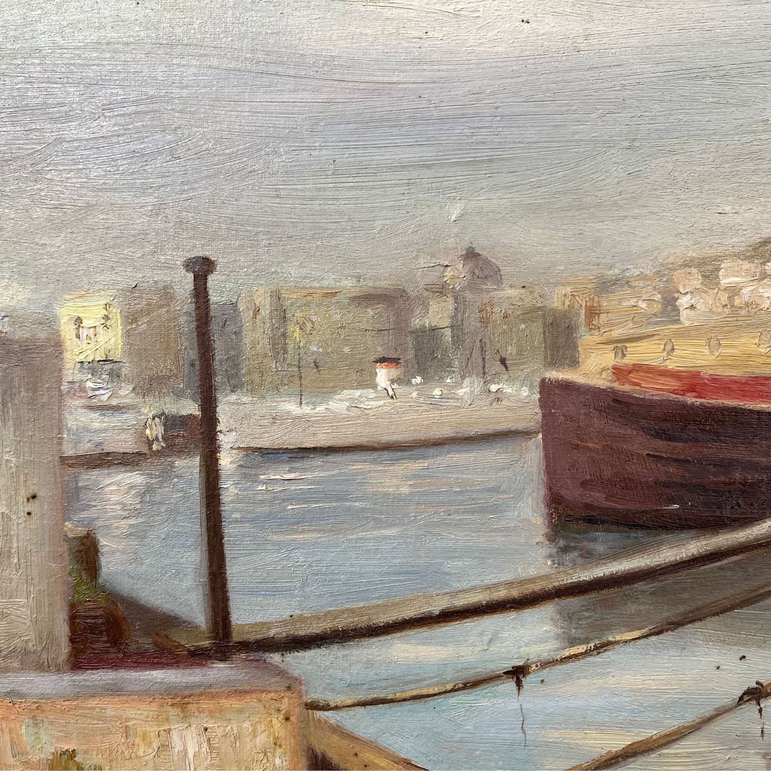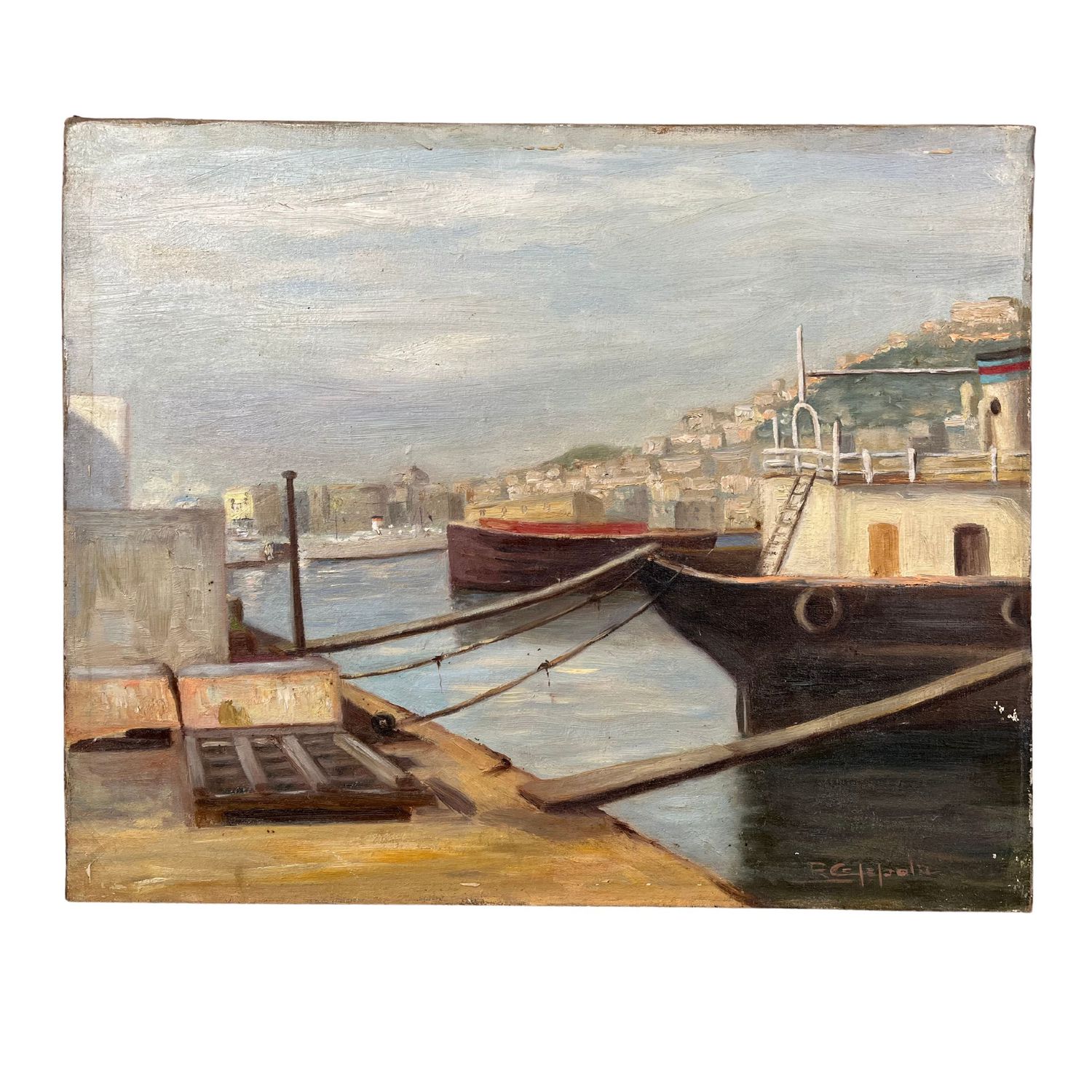 Dipinto olio su tela periodo XX secolo, scuola Napoletana raffigurante Scorcio di marina.