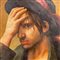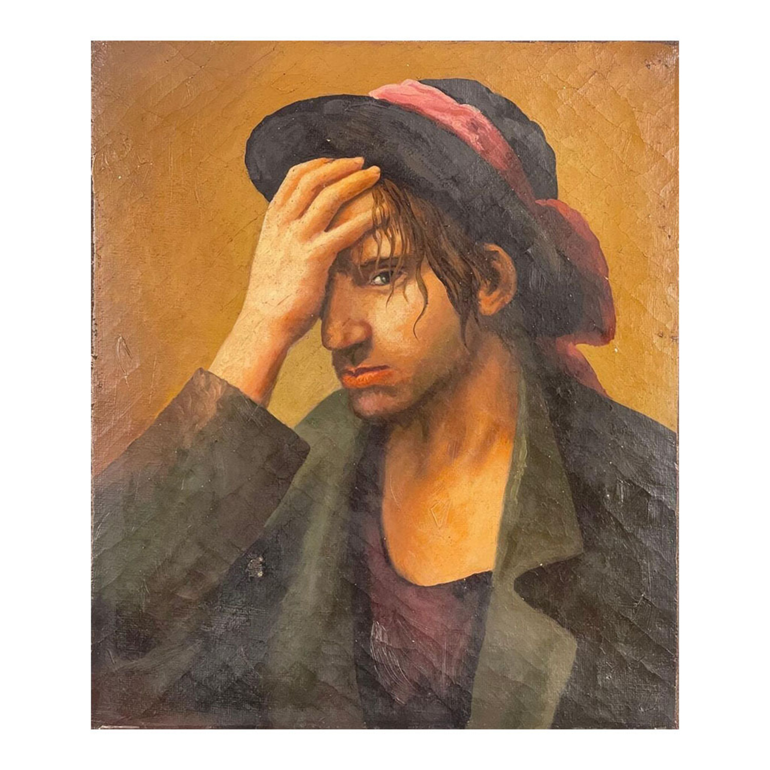 Dipinto olio su tela Scuola Europea, raffigurante Ritratto di Uomo con cappello. Copia d'autore.