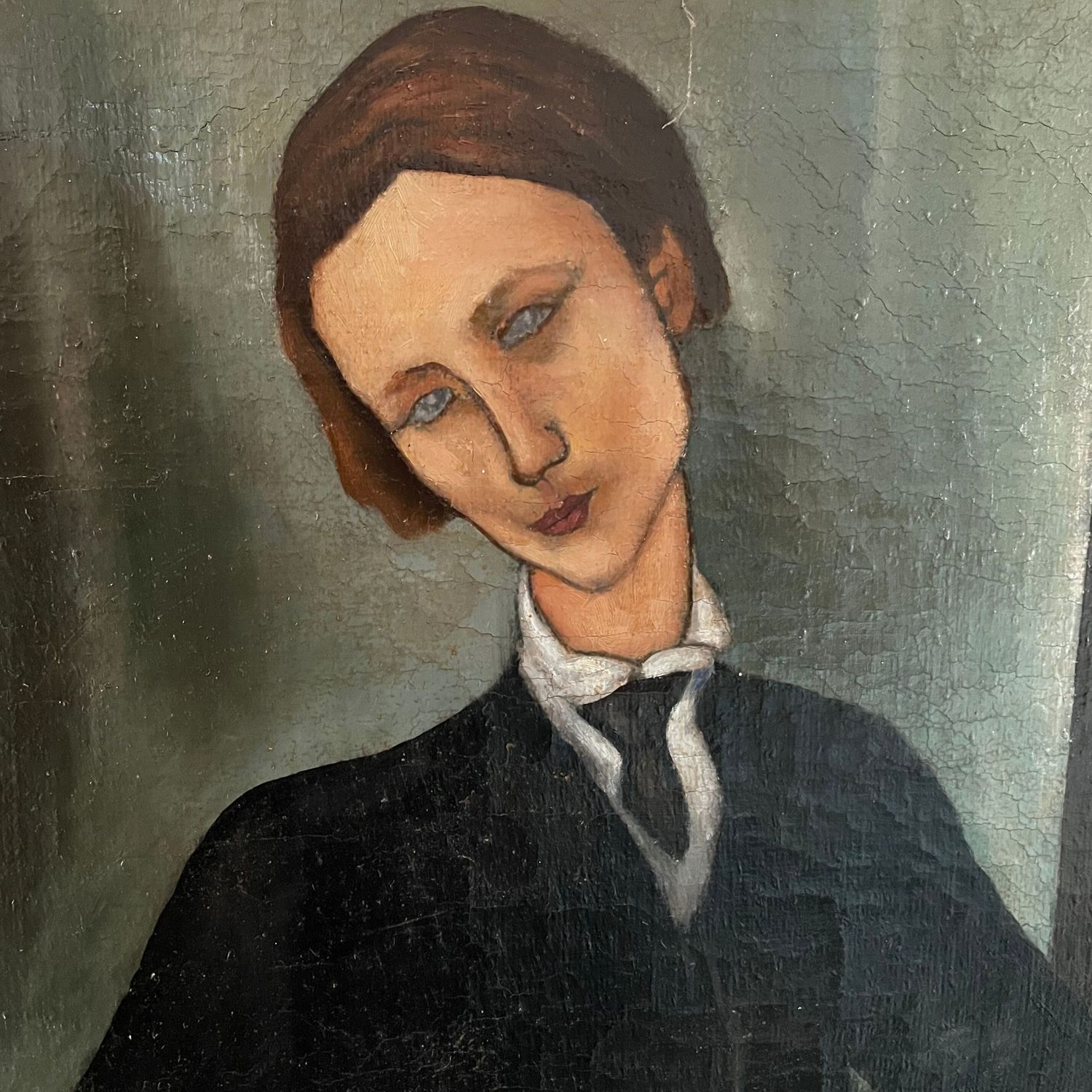 Dipinto olio su tela, omaggio a Amedeo Modigliani, periodo XX secolo (1950), raffigurante Pierre Edouard, eseguito da artista non identificato.