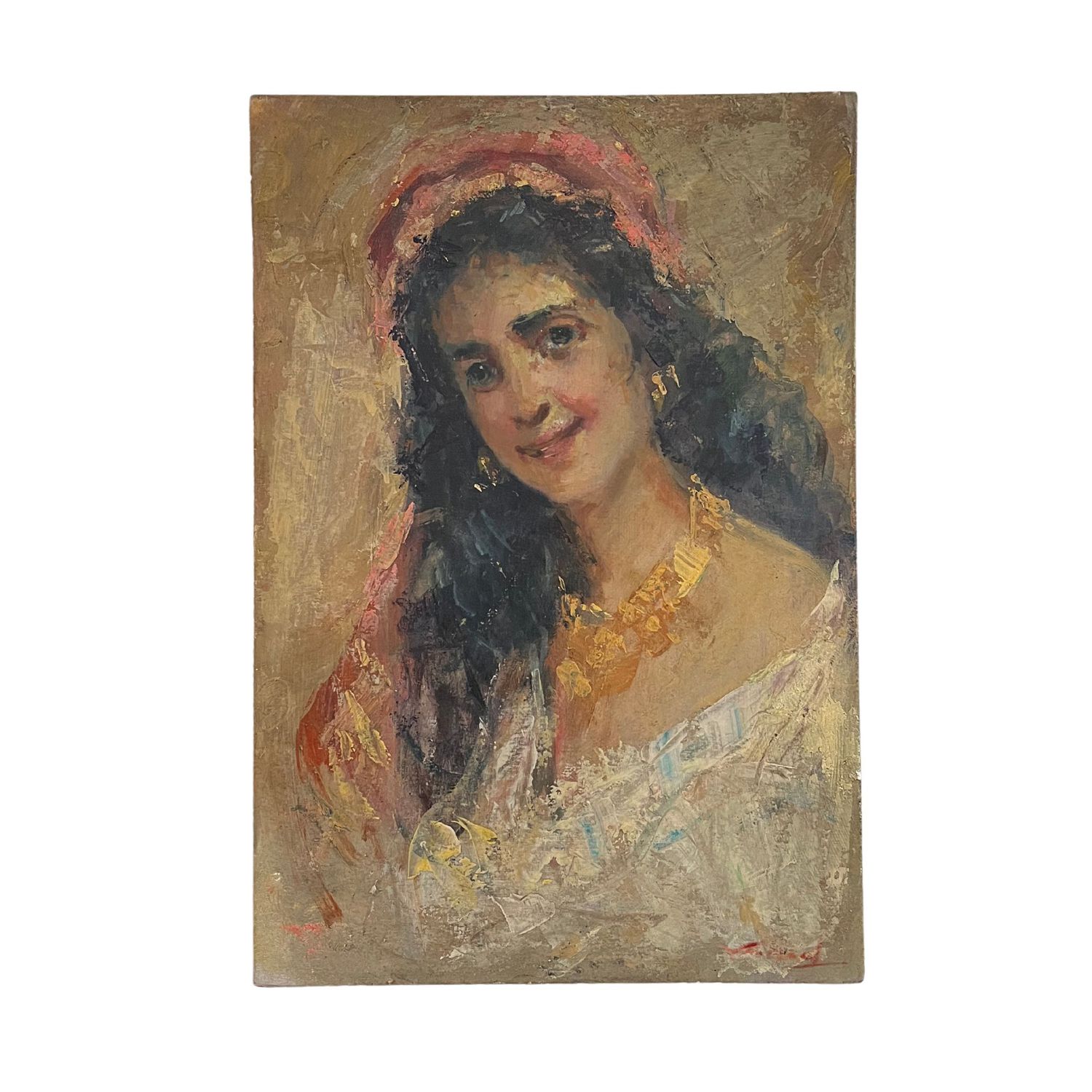 Dipinto olio su pannello, periodo XX secolo, scuola Italiana raffigurante Donna.