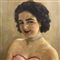 Dipinto olio su cartoncino periodo XX secolo scuola Francese raffigurante Ritratto di donna, firmato in basso a sinistra e datato 1950.