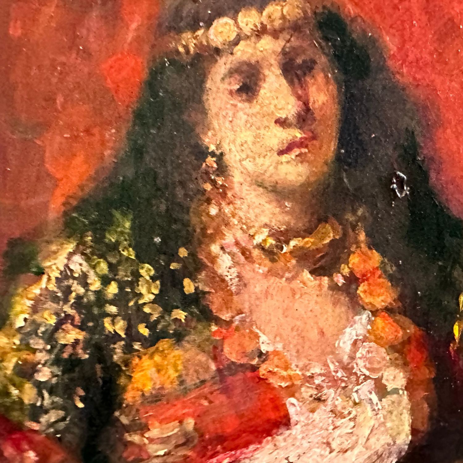 Piccolo dipinto olio su tavoletta periodo XX secolo scuola Italiana, raffigurante Ritratto di donna orientale.