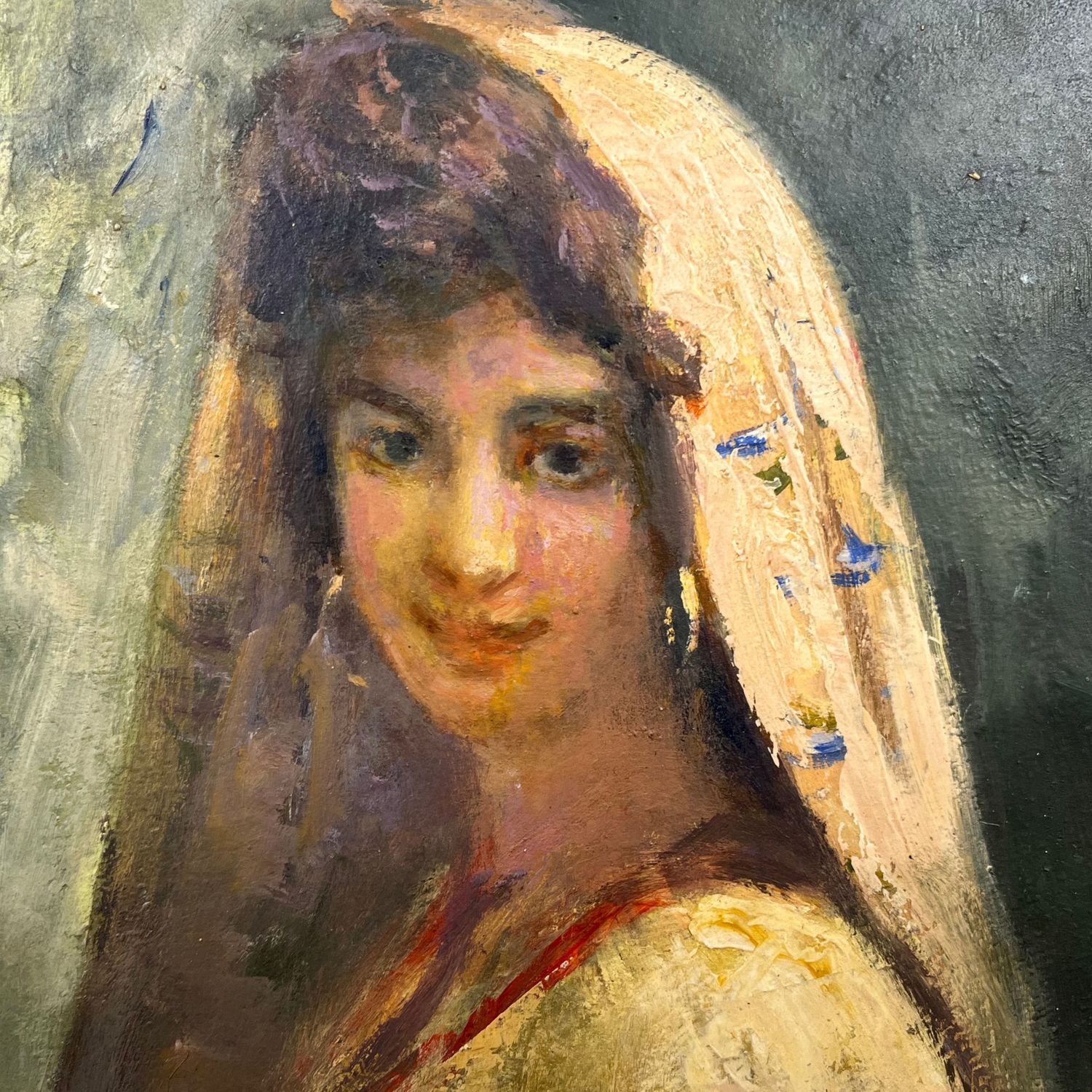 Dipinto olio su tavola periodo XX secolo scuola Italiana raffigurante Ritratto di donna con velo.