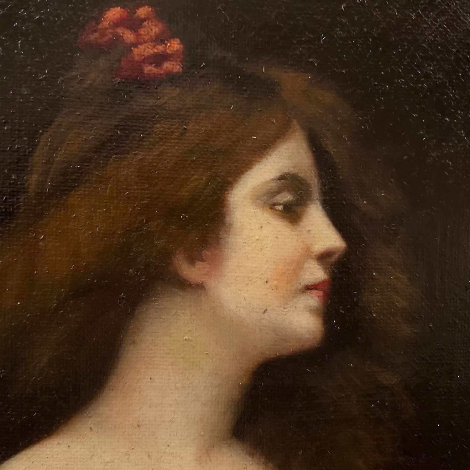 Dipinto olio su tela periodo XX secolo scuola Italiana, raffigurante Ritratto di donna nella maniera di Angelo Asti.