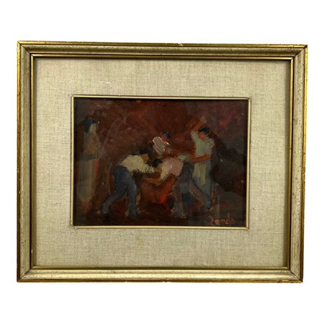 Dipinto olio su pannello, periodo XX secolo raffigurante Personaggi da artista Impressionista.