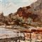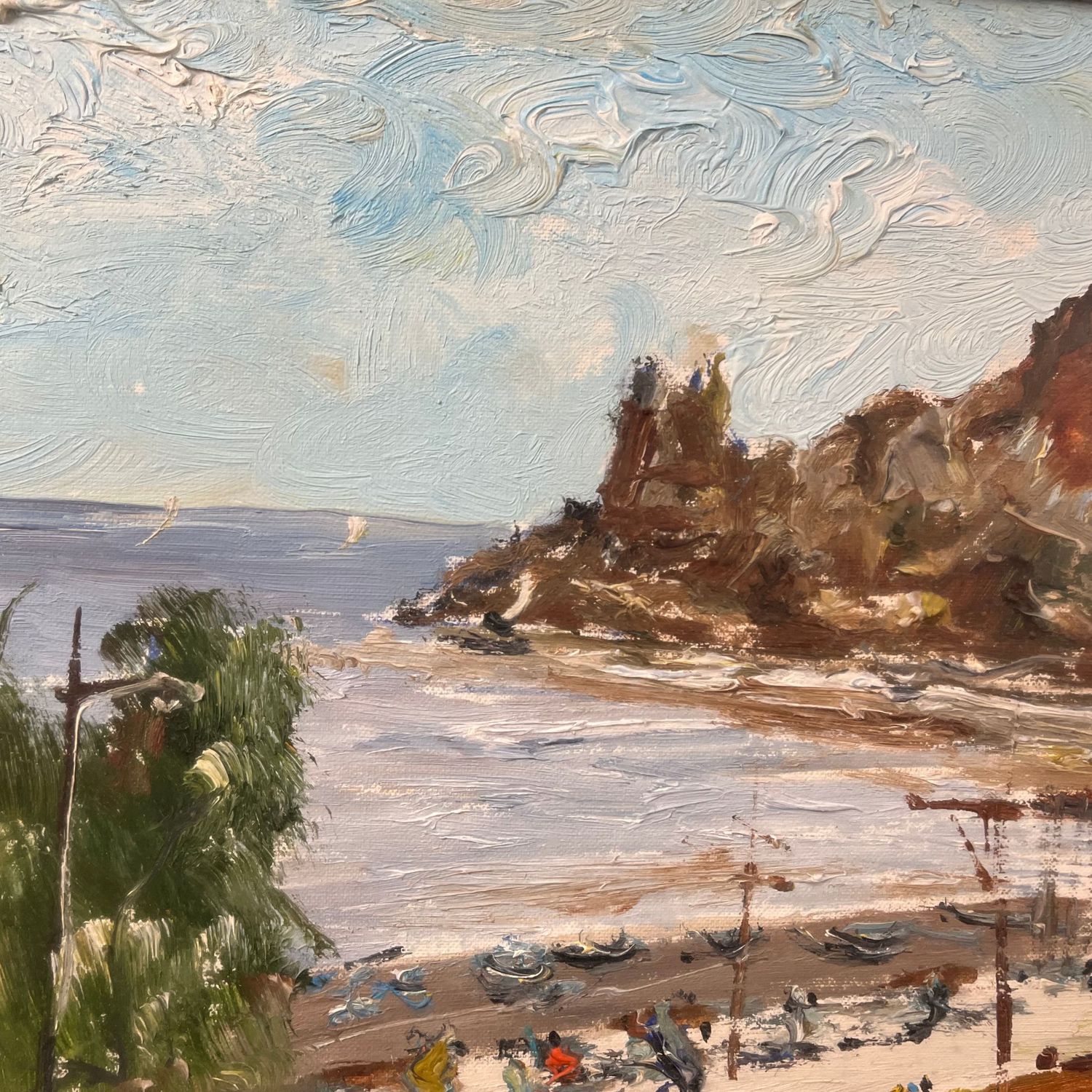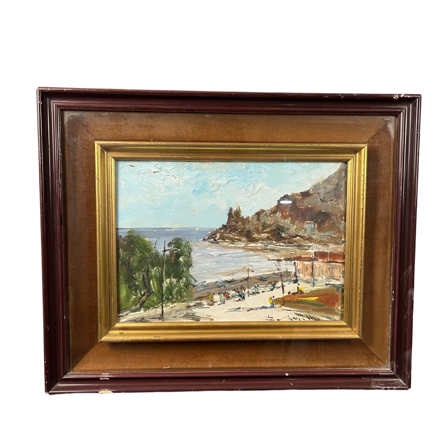 Dipinto olio su pannello, periodo XX secolo scuola Italiana, raffigurante Scorcio di marina di Montedoro.