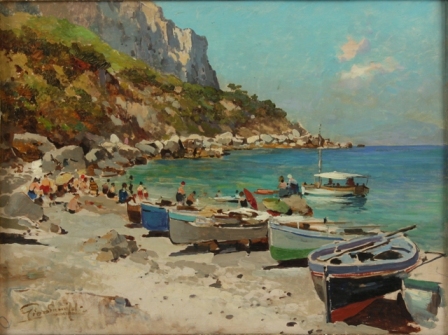 Felice Giordano Napoli 1880 – Capri 1964 Spiaggia a Capri olio su tela cm 31,5 x 42 firma ?