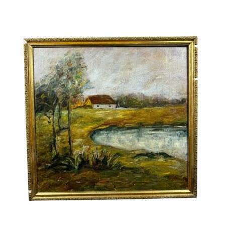Dipinto olio su tela, periodo XX secolo scuola Italiana, raffigurante Paesaggio.