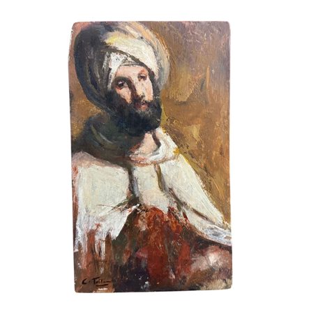 Piccolo dipinto olio su tavola, periodo XX secolo scuola Italiana, raffigurante Uomo con turbante.