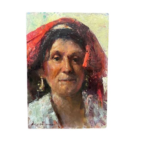Piccolo dipinto olio su pannello, periodo XX secolo scuola Italiana, raffigurante Ritratto di donna.