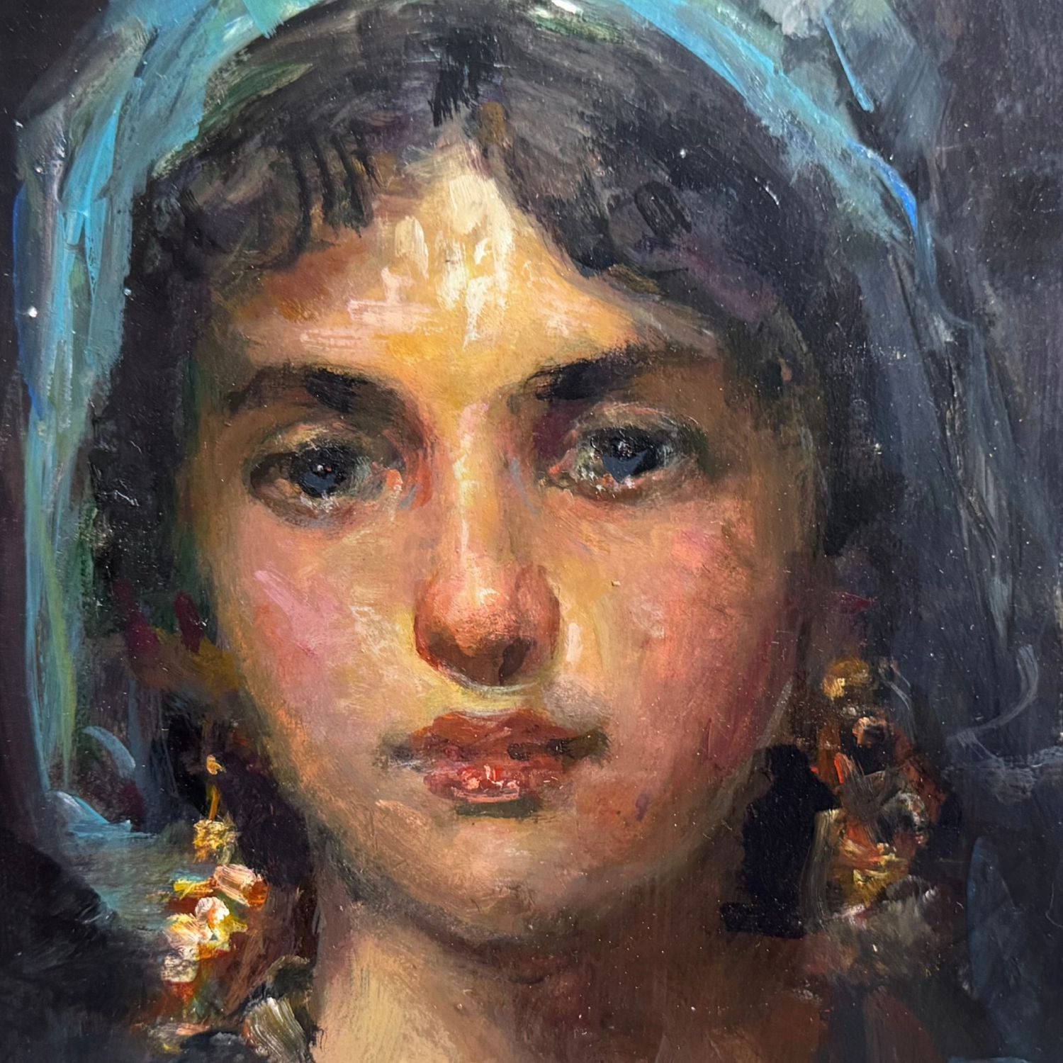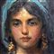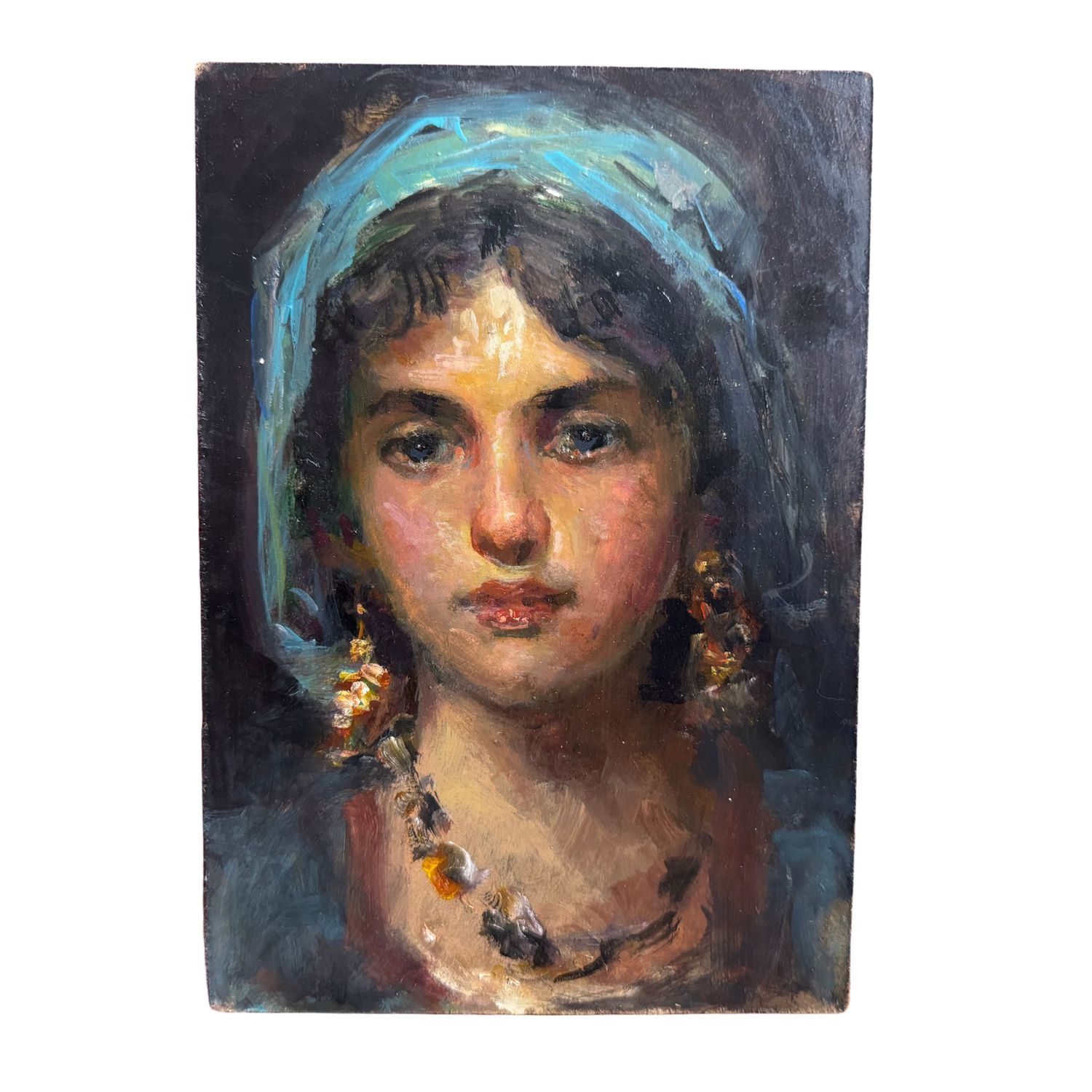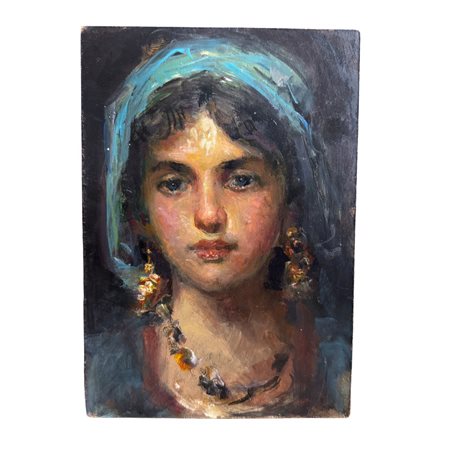 Piccolo dipinto olio su pannello, periodo XX secolo scuola Italiana, raffigurante Ritratto di giovane donna.