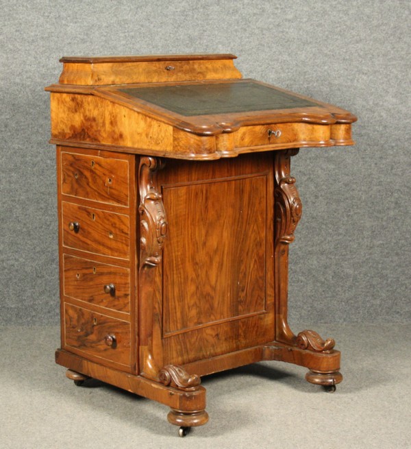 Scrivania davenport lastronata in radica. Inghilterra. XIX secolo. Mis. Lung. cm. 53 Alt. cm. 82 Prof. cm. 54 ca.