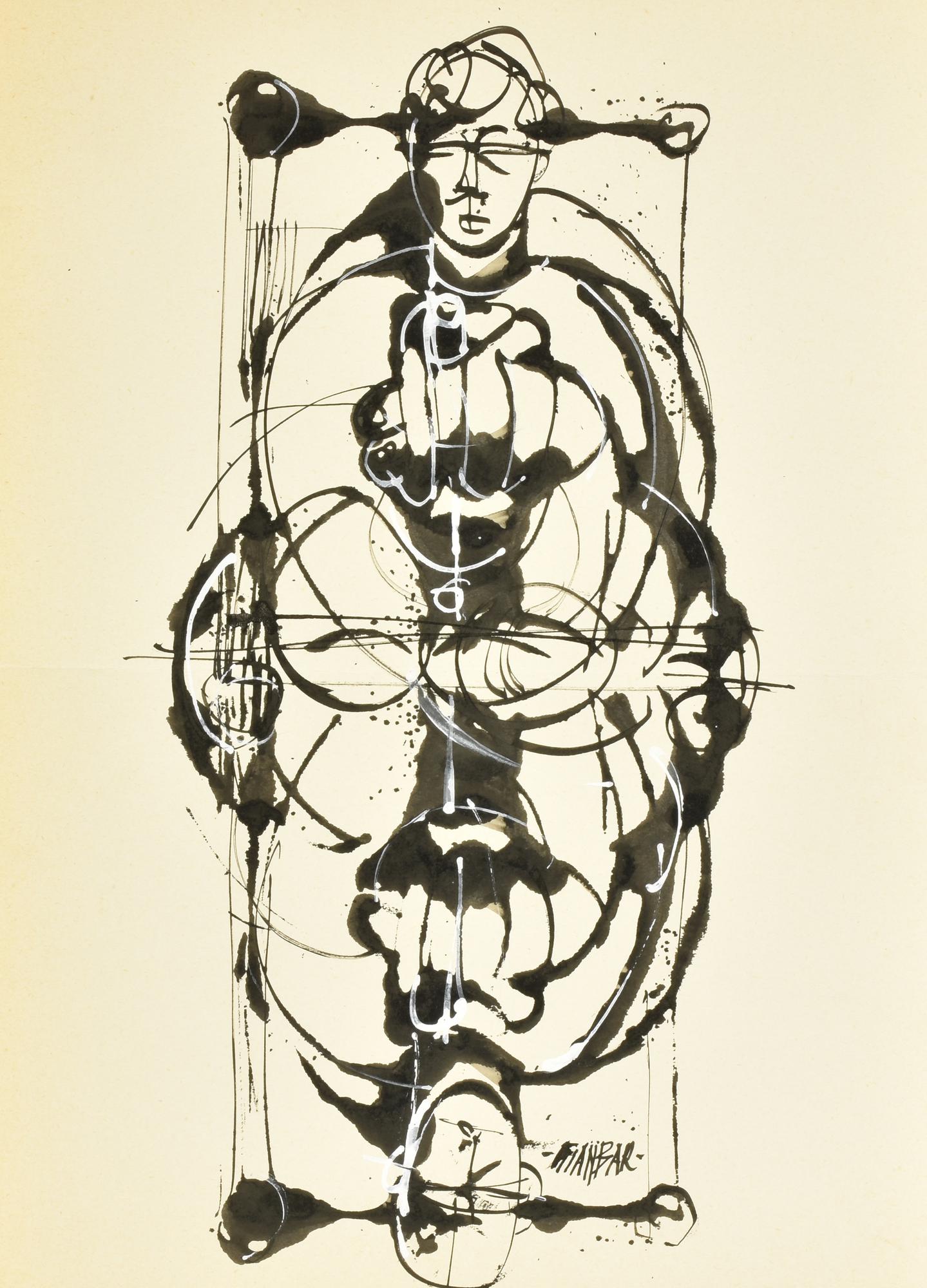 GIANBAR (Gianni Baretta) VIENI QUI tecnica mista su carta, cm 39x28 firma sul...