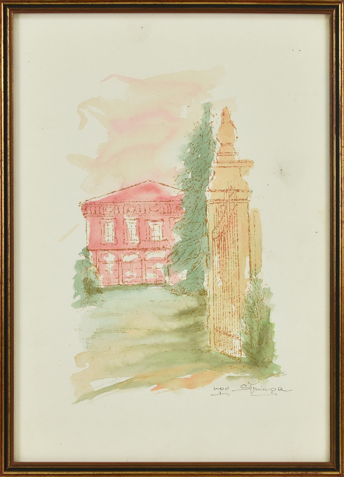Ugo Stringa VILLA tecnica mista su carta, cm 35x25 firma