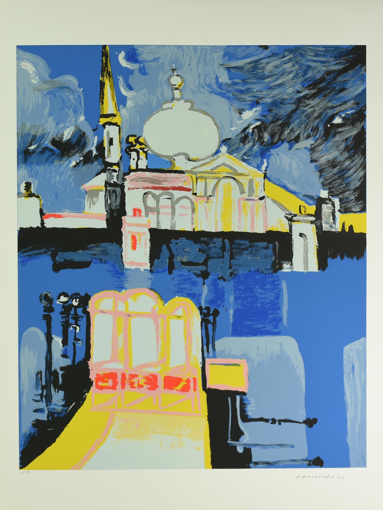Remo Brindisi VENEZIA, CHIESA DELLA SALUTE serigrafia su carta, cm 70x50; es....