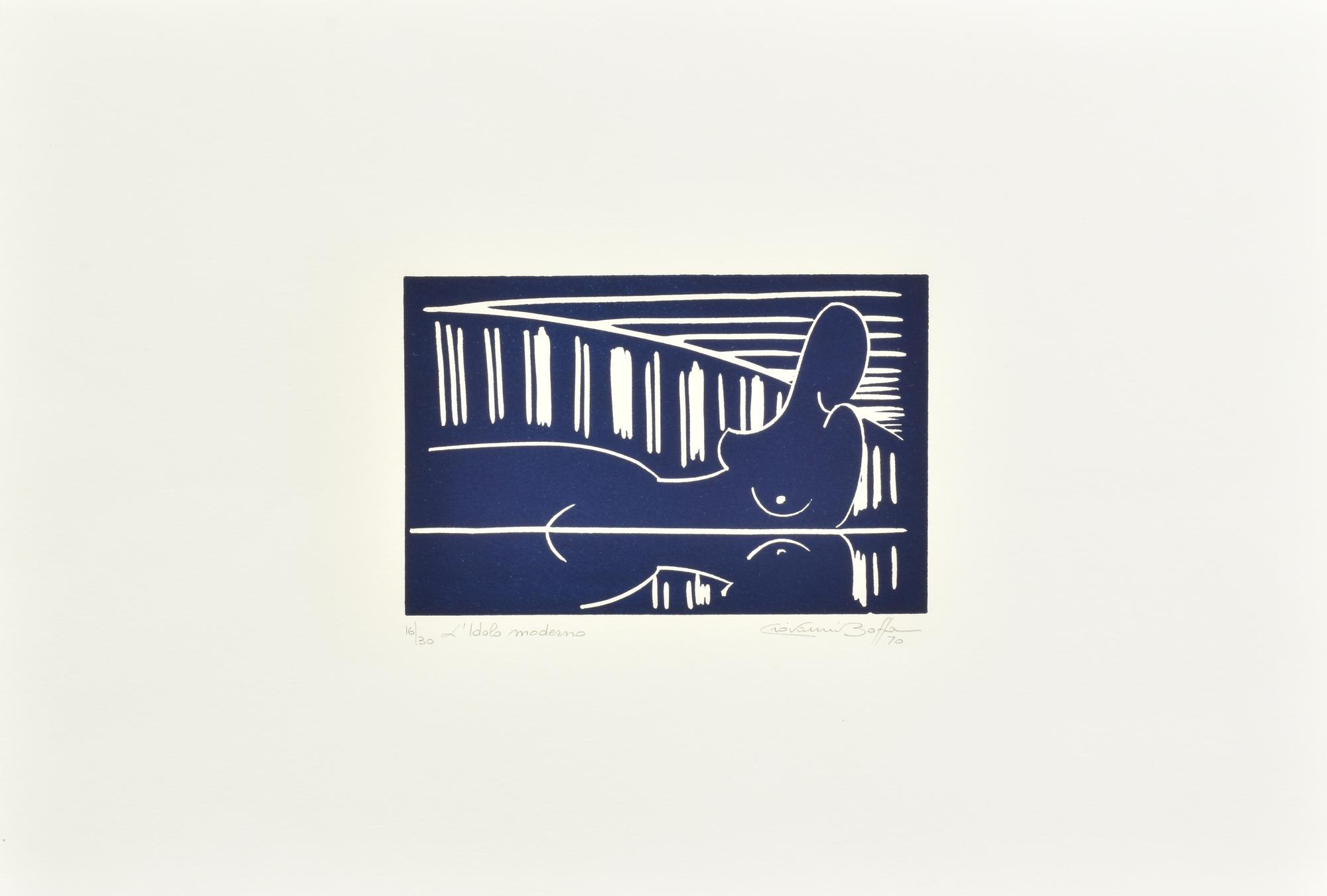 Giovanni Boffa L'IDOLO MODERNO linoleumgrafia su carta, cm 33,5x48,5; es....