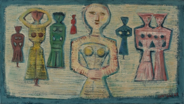 MASSIMO CAMPIGLI Firenze 1895 - Saint Tropez 1971 Figure, 1960 Olio materico su tela cm. 50 x 90 Firma e data in basso a destra Autentica su foto Archivio Campigli