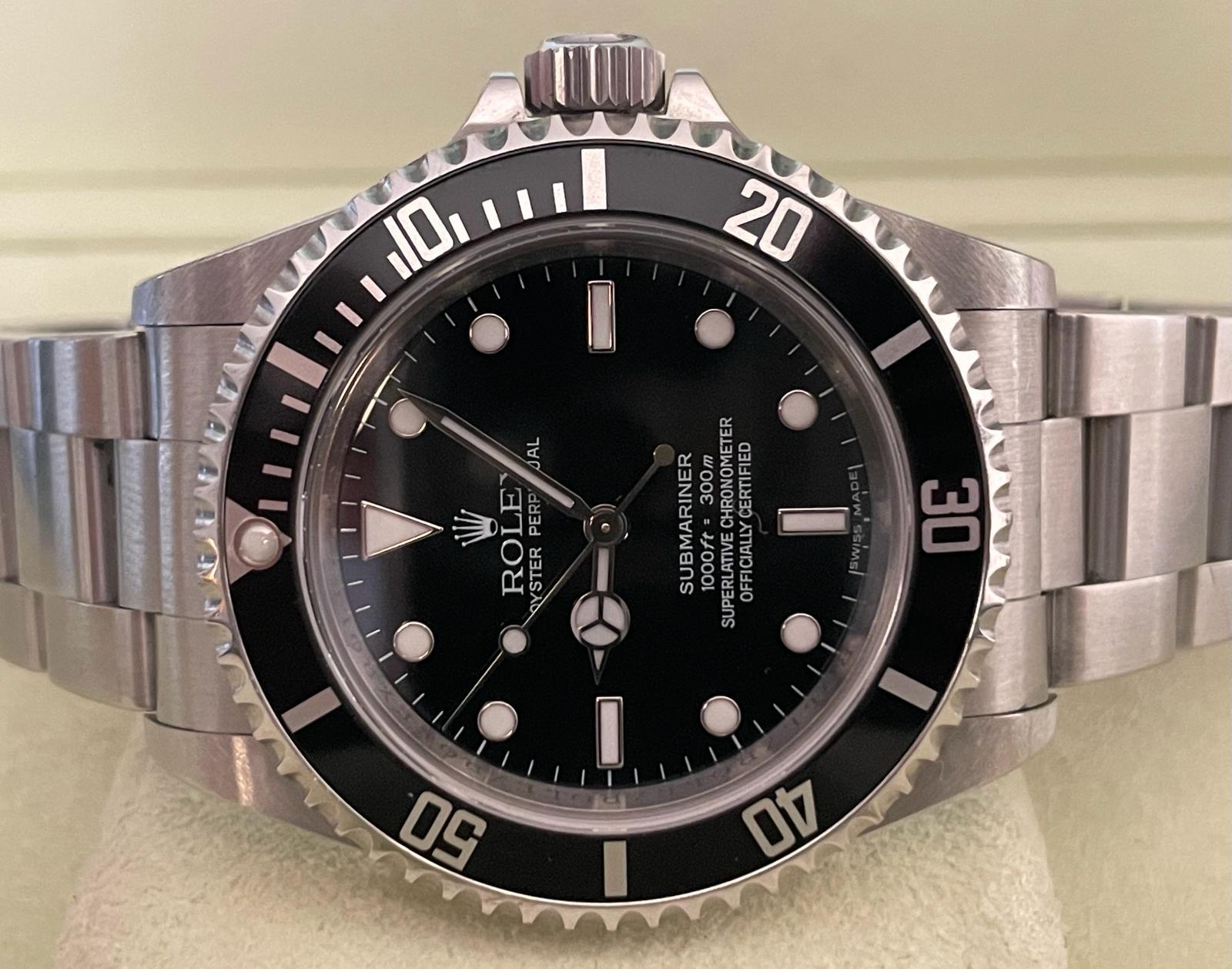 Marca Rolex Modello (Orologio) Submariner (No Date) Numero di referenza 14060M Carica Automatico Materiale della cassa Acciaio Materiale cinturino Acciaio Anno di produzione 2009 Condizione Ottimo (di seconda mano, segni di usura assenti o appena visibili) Corredo documenti originali, no box Carica Automatico Cassa Materiale della cassa Acciaio Diametro 40 mm Impermeabile 30 ATM Materiale lunetta Acciaio Vetro Vetro zaffiro Quadrante Nero Numeri sul quadrante Senza numeri Cinturino Materiale cinturino Acciaio Colore cinturino Acciaio Chiusura Déployante Materiale chiusura Acciaio