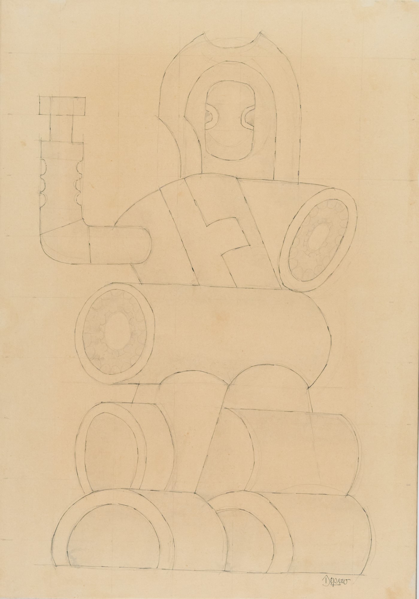 Fortunato Depero (Fondo (Tn) 1892-Rovereto (Tn) 1960) Automa, Anni '50 China,...