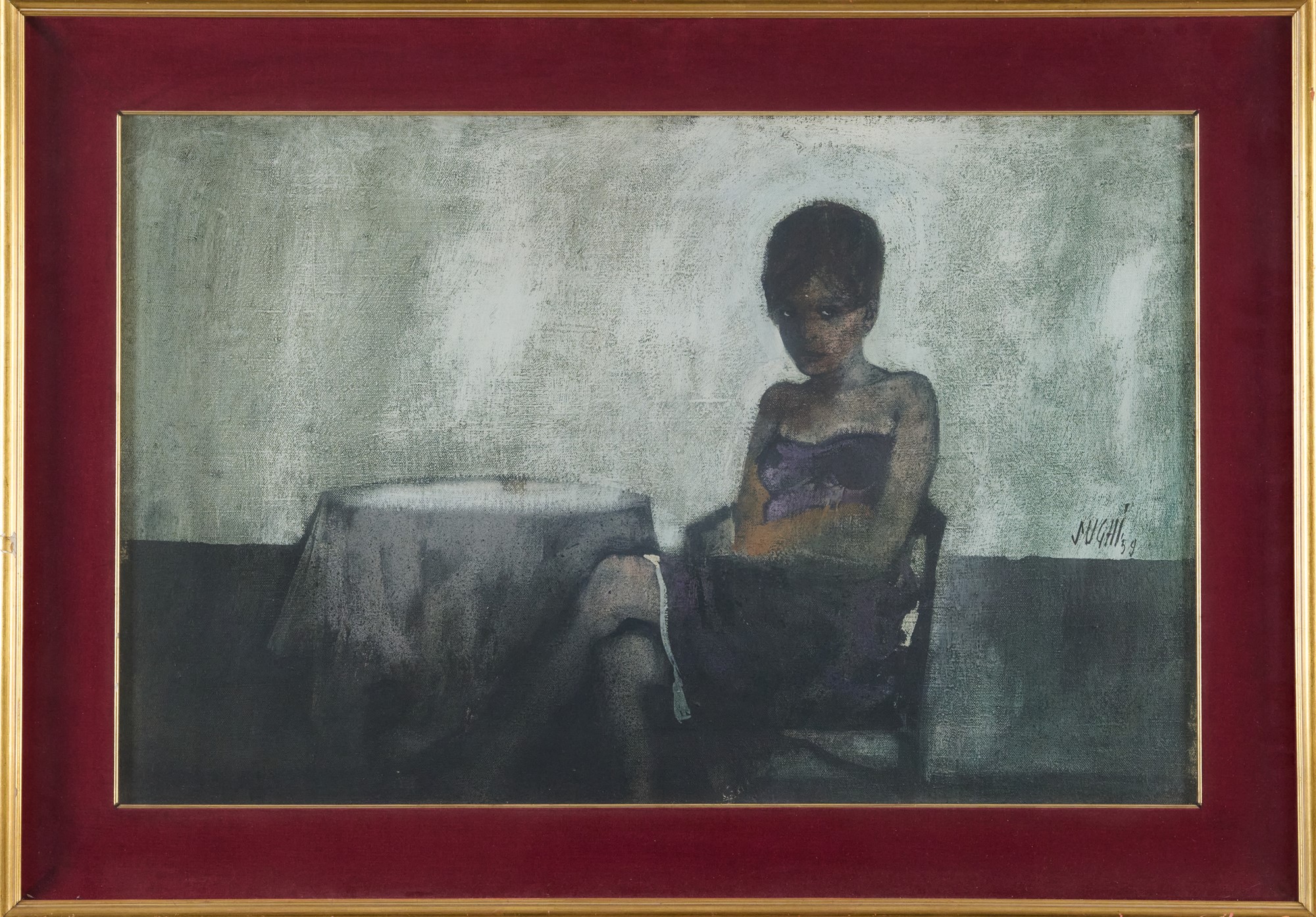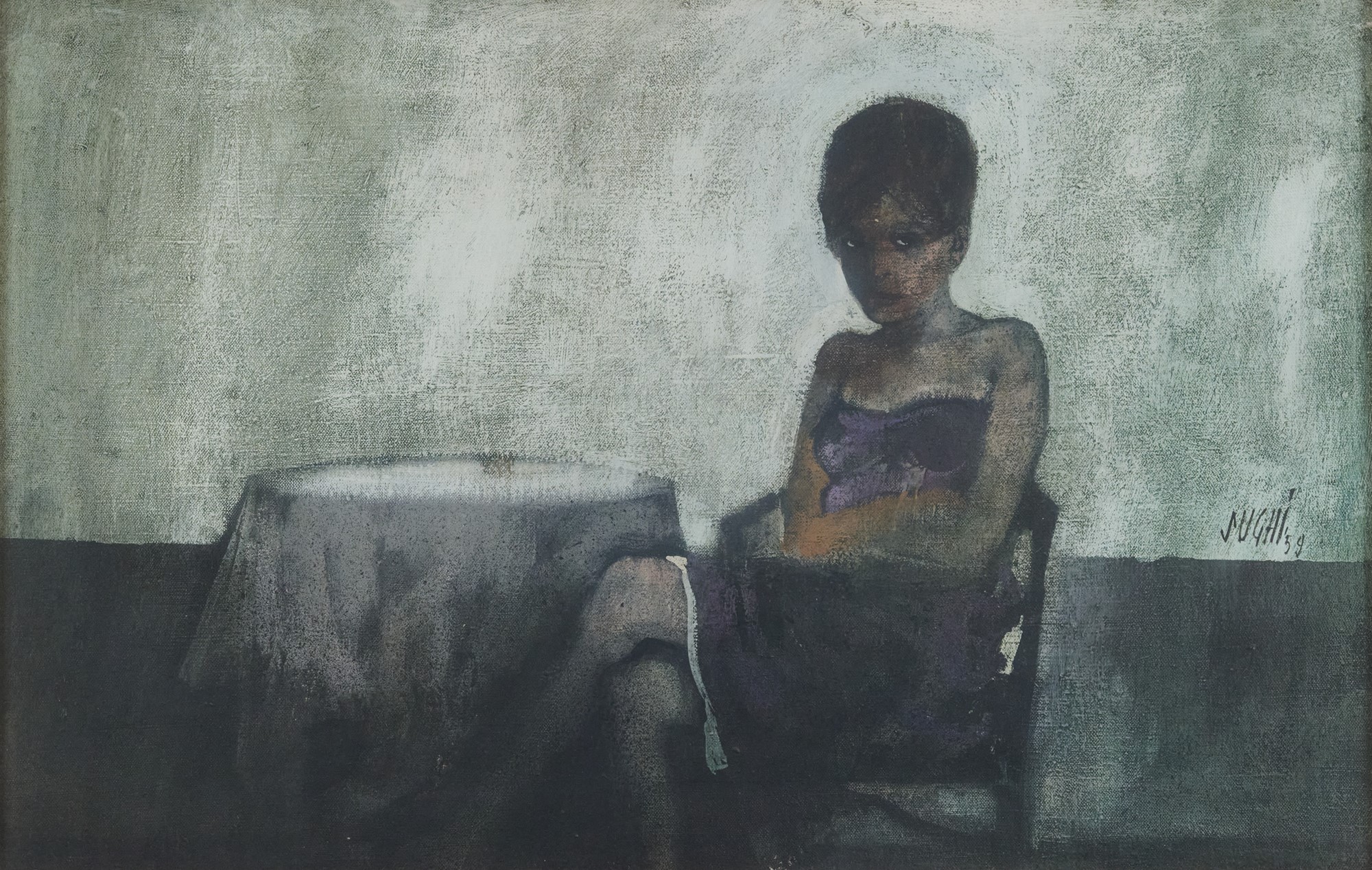 Alberto Sughi (Cesena 1928-2012) Donna al bar, 1959 Olio su tela cm. 45x70...